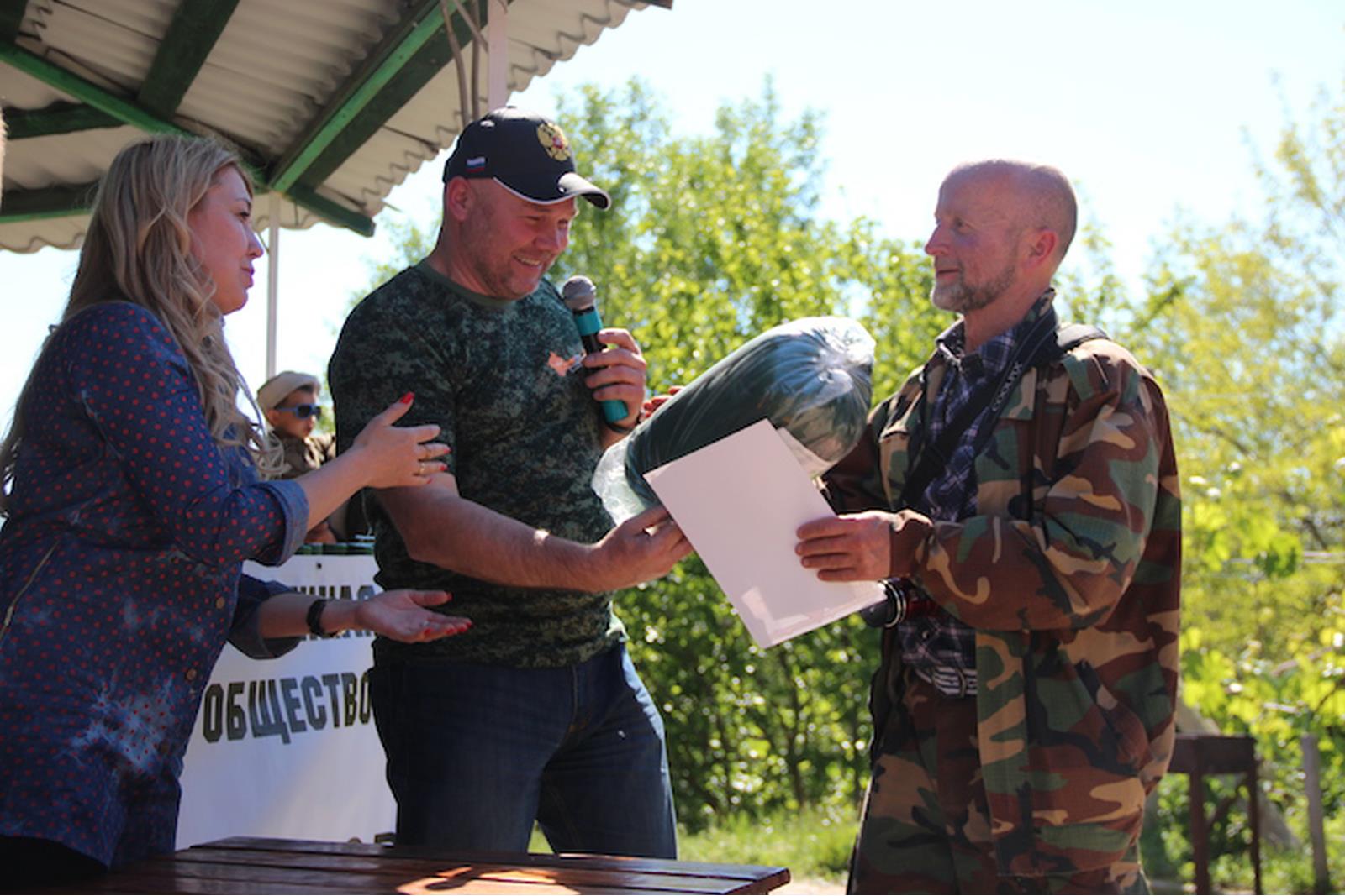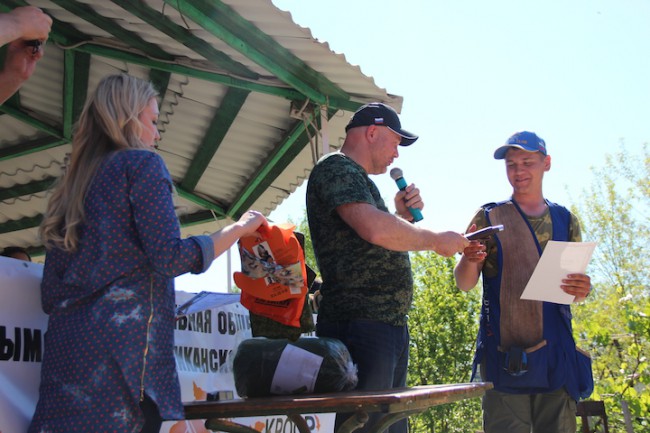 Самый молодой участник турнира Грабовой Дмитрий получает в подарок охотничий нож от магазина "Водный мир" (директор Фролов Дмитрий)