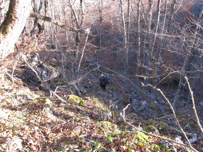 Так как птица была поднята в трех схожих местах, мы для себя определили ее возможное местонахождение и дальше дело пошло повеселее, в большей степени для собак, чего не скажешь о людях. Приходилось периодически останавливать время, брать собак на поводок и делать тяжелые переходы заходя на влажные склоны многочисленных, очень крутых, заваленных буреломом каменистых балок. В тот день успели посмотреть шесть (с половиной) собак;