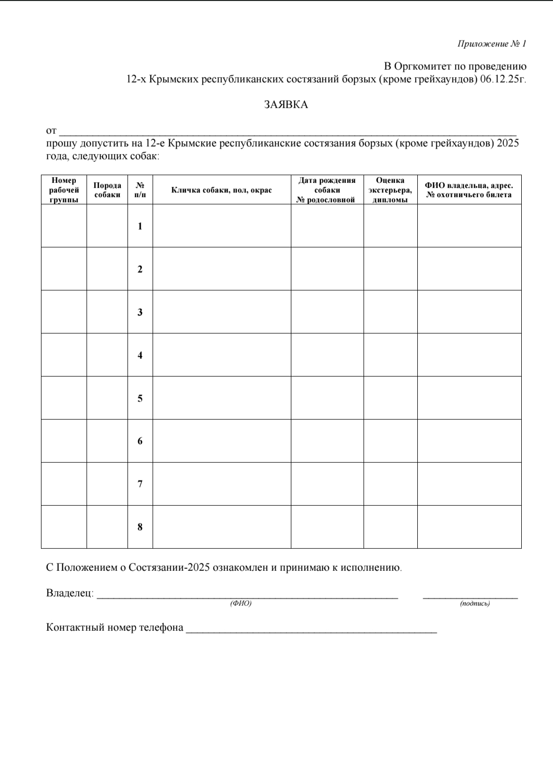 Регистрация на 12-е состязания борзых (кроме грейхаундов) с 7 до 9 часов 6.12.25г.