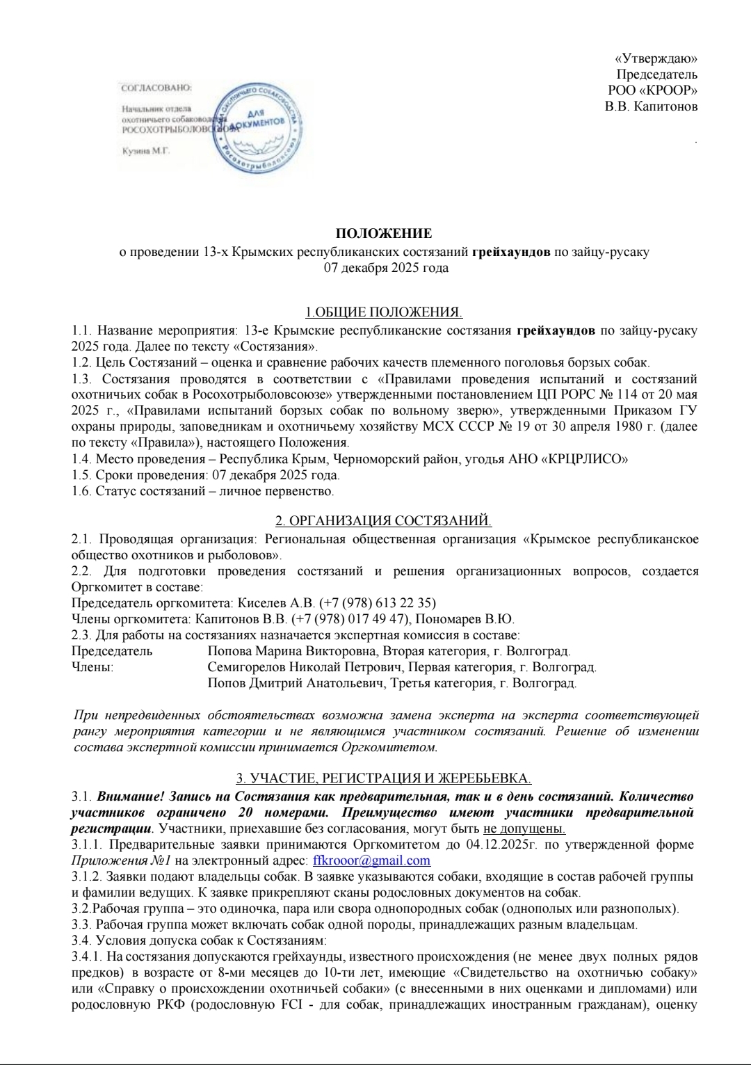 6 декабря 2025г. - 12 Крымские республиканские состязания собак борзых пород (кроме грейхаундов).