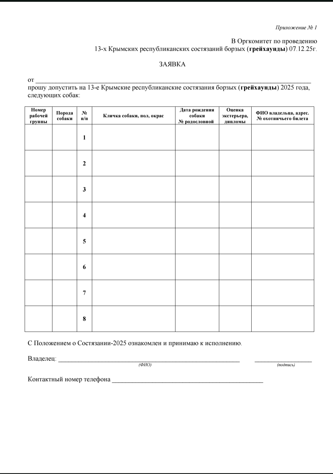 Регистрация на 13-е состязания борзых (грейхаунды) с 7 до 9 часов 7.12.25г.