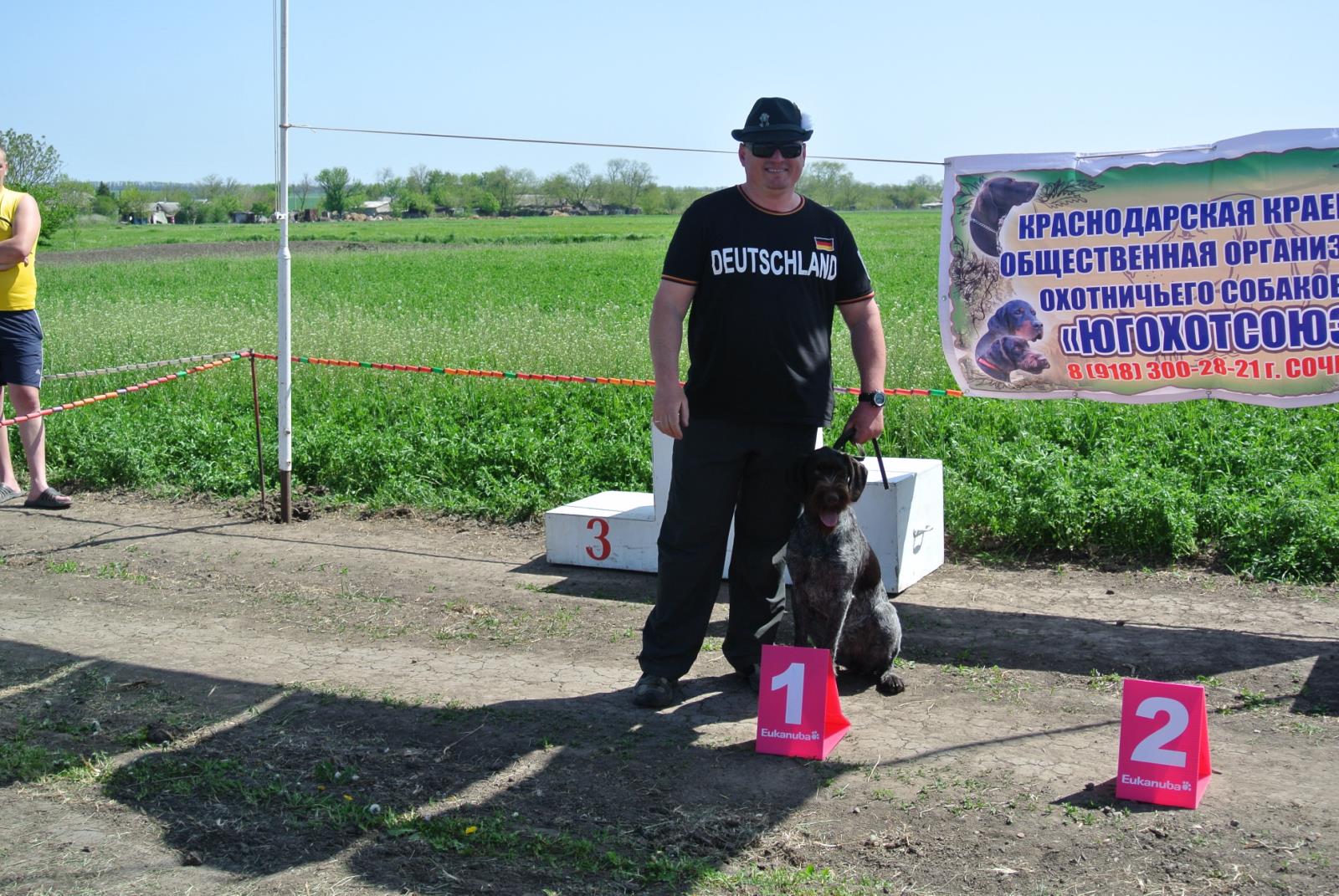 РЕЗУЛЬТАТЫ Монопородной выставки - КЧК «Немецкий дратхаар», 1 мая 2013г., Краснодарский кр., ст. Староминская. эксперт VDH - Zuchtrichterauswies herr NORBET FEUERBACH - Германия класс ЩЕНКИ / СУКИ 1. АЙВА, 28.08.12гр., РКФ 3415796, клеймо ROR-007, коричневый (KUNO vom FUCHSER, РКФ 3214013, вл. Антоненко В.А. – ДОРОГУША, РКФ 3674932, вл. Бабынин В.А.) вл. Чумаченко И. (г. Ростов) БОЛЬШАЯ ПЕРСПЕКТИВА, ЛУЧШИЙ ЩЕНОК ВЫСТАВКИ класс ЮНИОРЫ / КОБЕЛИ ![]() 1-е место EIKO v.d. KARTHANE, 12.06.2012гр., Германия ZB 220346, РКФ 3438865 (FALK v.d. KÖNIGSAUE, ZB 210486 - YANDRA vom LIETHER-MOOR, ZB 204714) вл. Тивилин Максим (Краснодарский край, Сочи) ОТЛИЧНО - I, CW, ЮСС, ЮКЧК ![]() 2-е место LUCHS II vom LIETHER-MOOR, 29.04.2012гр., Германия ZB 219942 (WALDMANN vom LIETHER-MOOR, ZB 203444 - VELLA vom LIETHER-MOOR, ZB 198096) вл. Тищенко Александр (Украина, Кривой Рог) ОТЛИЧНО - II, ЮСС ![]() 3-е место ДАКСЕЛЬ, 08.01.2012гр., РКФ 3184905, клеймо ROА-1805, кор.-пег. (GRAF v.d. KÖNIGSAUE, ZB 2138210, вл. Бондаренко С.В. - АДИТА, ВПКОС 3930/09, вл. Назарова С.Н.) вл. Бобырь К. (Краснодарский кр., с. Каневская) ОТЛИЧНО - III, ЮСС ![]() 4. BRIK od HUDEKA (БРЭД), 19.06.2012гр., UKU 0146474, кор.-пег. (INUK vom ERTHAL, ZB 207895 - XAVA od STANOVSKEHO, Словакия (ČSSR) SPKP, 4193/09) Нестеренко К.И. (Ар Крым, пгт. Черноморское) ОЧЕНЬ ХОРОШО ![]() 5. ЕСАУЛ ВОМ ХОНЕВЕРГ, 19.07.2012гр., РКФ – обмен, клеймо ROA-1981, кор.-пег. (UNO vom SCHINKELBERG, ZB 205041, вл. Daniel Schindler - АЯ, РКФ 2176007, вл. Кривошеев С.В.) вл. Бабынину И.А. (Ростовская обл., г. Сальск) ОЧЕНЬ ХОРОШО ![]() класс ЮНИОРЫ / СУКИ 1-е место BUFFI OD HUDECA, 19.06.2012гр., UKU 0146483, клеймо 4814, кор.-пег. (INUK vom ERTHAL, ZB 207895 - XAVA od STANOVSKEHO, Словакия (ČSSR) SPKP, 4193/09) вл. Карпенко П. (Украина, АР Крым, г. Евпатория) ОТЛИЧНО -I, CW, ЮСС, ЮКЧК 2. ЕГЕРМАСТЕР ГЕВИТТЕР, 30.01.2012гр., РКФ 3223746, кор.-пег. (XAVO v.d. DACHSWIESE, ZB 209731, вл. Ашихмин О.В. - ЕГЕРМАСТЕР АГАТА КРИСТИ, РКФ 2347478, вл. Большунов А.) вл. Мельник А. (Краснодарский кр., г. Кореновск) ОЧЕНЬ ХОРОШО ![]() ![]() 3. ERLE V.D. KARTHANE, 12.06.12гр., РКФ 3438866, кор.-пег. (FALK v.d. KÖNIGSAUE, ZB 210486 - YANDRA vom LIETHER-MOOR, ZB 204714) вл. Шека А. (Краснодарский кр., ст Староминская) ОЧЕНЬ ХОРОШО класс ПРОМЕЖУТОЧНЫЙ / КОБЕЛИ 1-е место CNАST II vom SÖNNERBACH (НЭШ), 04.12.2011гр., Германия ZB 218033 (CONDOR II vom LIETHER-MOOR, ZB 209324 – ANKA II vom SÖNNERBACH, ZB 211079) вл. Шека Андрей (Краснодарский край, ст. Староминская) ОТЛИЧНО, CW, ЛК., КЧК ![]() ДАКАР ВОМ ХОНЕВЕРГ, 24.07.11гр., РКФ 3094934, клеймоROА 1743, кор.-пег. (SCHEICH vom OSTETAL, ZB 190827, вл. Reiner Wedemeier - АНДА, 3574/06, Кривошеев С.В.) вл. Голубев А.С. (Краснодар) НЕЯВКА класс ПРОМЕЖУТОЧНЫЙ / СУКИ BONNIE vom SELZBACHTAL, 13.10.2011гр., Германия ZB 217686 (KUNO vom ERTHAL, ZB 211107 – QUASTEL v.d. AULA, ZB 204200, вл. Michael Spies) вл. Тивилин Максим (Краснодарский край., г. Сочи) ОТЛИЧНО, CW, СС, КЧК, ЛУЧШАЯ СУКА, ЛПП класс ОТКРЫТЫЙ / КОБЕЛИ 1-е место МАКФЛОЙ – БУРГЕР, 28.01.2009гр., РКФ обмен, клеймо OSO-52, кор.-пег. (THOR vom AHORNWALD, ZB 200205, вл. Sebastian Freisleben – YOLA II vom GEHRENBERG, ZB 204785, вл. Чуканов А.) вл. Желдаков В.П. (Краснодарский кр., ст. Калининская) ОТЛИЧНО - I, CW, СС 2-е место СЕВЕР, 30.01.2011гр., РКФ2999482, клеймо RRO 183, кор.-пег., (PITT IV vom DONAUECK, РКФ 2756172, вл. Шариков Ф.А. – ЖАСМИН, РКФ 2029215, вл. Кирюничев В.А.) вл. Стрюков А.В. (г. Анапа) ОТЛИЧНО -II, СС ![]() 3. ГРЕЙ, 02.06.09гр., РКФ 3438001, клеймо ККО-3173, кор.-пег. (ГРЕЙ, ВПКОС 4262/11, вл. Голубицкий М.Г. – БАДА, ВПКОС 3899/09, вл. Данченко А.А.) вл. Голубицкий М.Г. (Краснодарский кр., г. Ейское укрепление) ОЧЕНЬ ХОРОШО ![]() 4. ШАРК ОЛИВЕР, 26.02.11гр., РКФ 2951733, клеймо OSO-260, кор.-пег. (МАРТИН-ФИШ - Д-ТЕРРИ, вл. Котенко О.) вл. Решетников Д. (Краснодарский кр., г. Сочи) НЕЯВКА 5. JACK vom FUCHSBERG, 27.10.2009гр., Германия ZB 211767, (KARLO vom LANDHAGEN, ZB 182424 – BEA vom FUCHSBERG, ZB 196468, вл. Eva-Maria Hoff) вл. Болотов И.В. (Ставрополь) НЕЯВКА 6. KUNO vom FUCHSER, 28.01.2010гр., РКФ 3214013 (TREFF v.d. DACHSWIESE, ZB 207368 – ALTMÄRKERS ZECKE, ZB 206350) вл. Антоненко В.А. (Краснодарский кр., Новороссийск) НЕЯВКА класс ОТКРЫТЫ