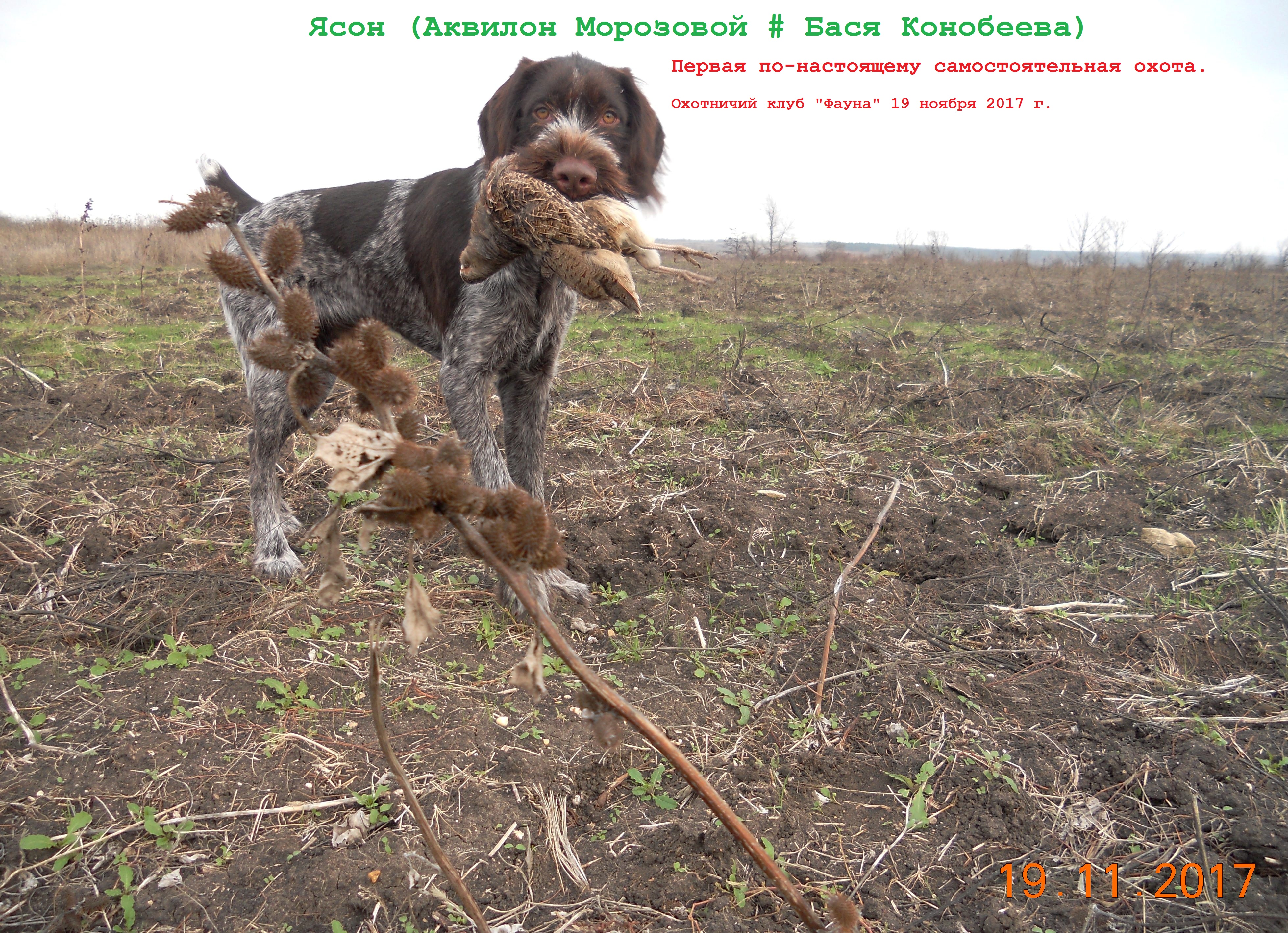 Пока наша главная охотница- пойнтер Айна/Гетера будет 2 недели на больничном,- мы скромненько учимся охотиться с 7 месячным щенком.