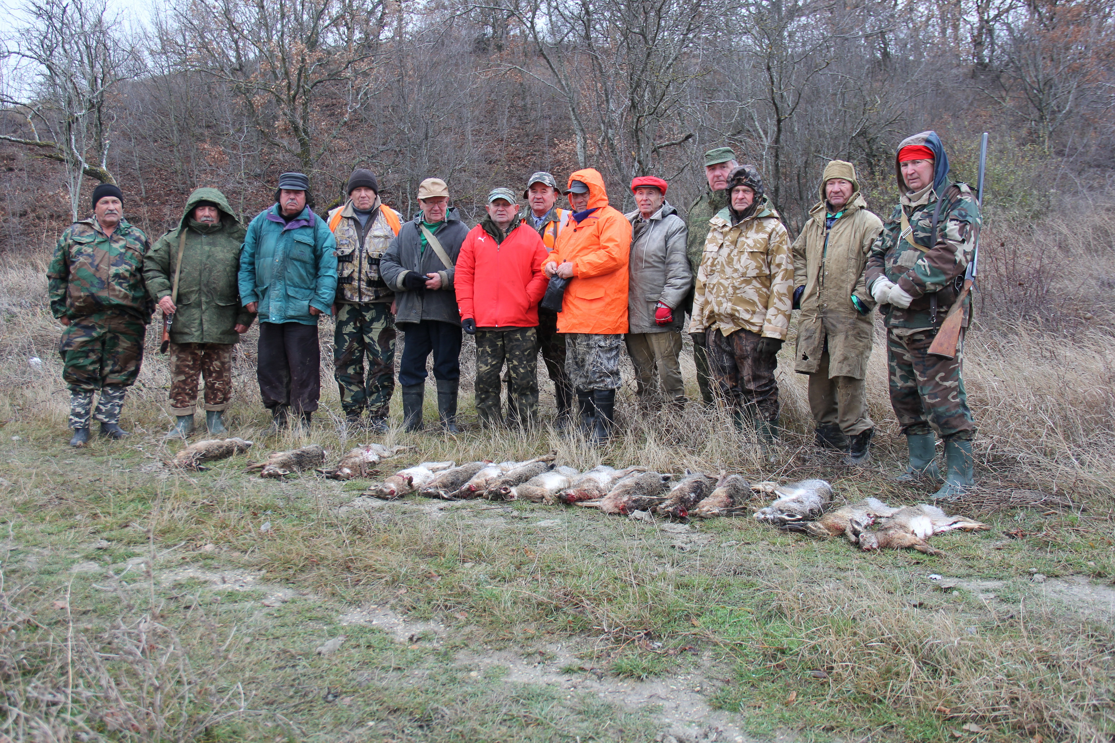 В самой охоте, приняли участие 17 охотников-ветеранов, чей возраст перешагнул за 70 лет. Кто ощущал в себе достаточно сил и энергии пошел в загон, остальные на номера. В самом загоне мы старались распределиться через одного, для помощи в переноске зверьков и «огневой поддержке», хотя последнее было явно излишним, дедушки и сами справно стреляли, успевай только головой крутить да ползать под шпалерой, зверьков подбирать…