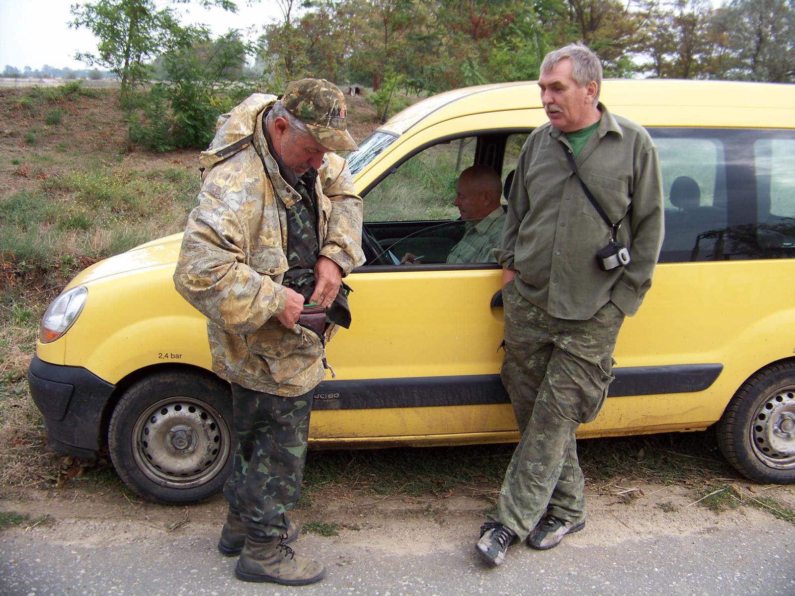 Вот оно, долглжданное место встреч, с представителем местной администрации от охоты. Григорьевич, любезно согласился подьехать на развилку дорог, чтобы мы не наматывали лишние километры по незнакомой местности. Выписал нам "отстрелки". Напутствовал. Вобщем мы мило побеседовали, обменялись телефонами и пригласив Григорича к нам на открытие по фазану и куропатке, проследовали к месту ночевки.