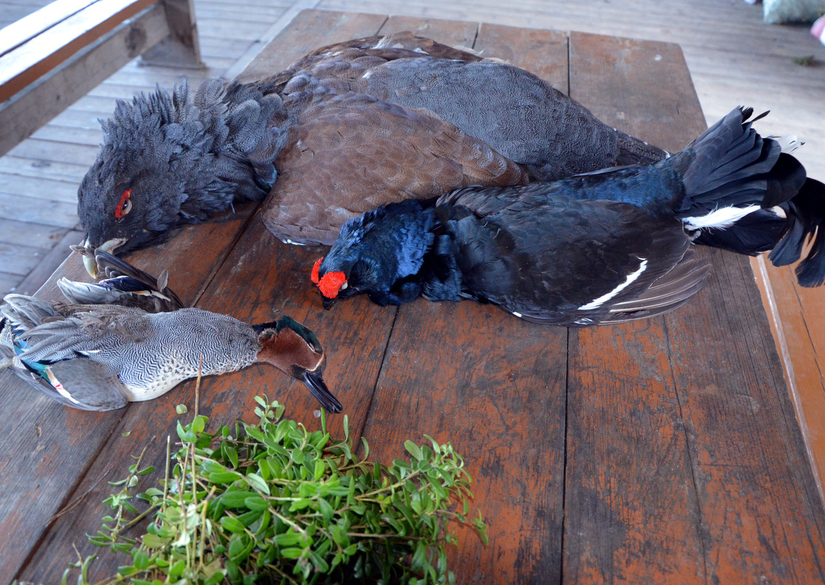В другие дни подобные попытки оканчивались одинаково: глухарь срывался вне выстрела и с громким и радостным хлопаньем крыльев уходил. В один из дней с местным охотником прогулялся вдоль протоки между озером и рекой для разведки: селезней подняли немало и наметили места охоты на следующие вылазки. За ночь вода поднялась и затопила все дороги, тропы и луга. Утки и гуся было немало. Но добраться до них по мешанине из деревьев, кустов, травы, грязи и воды не удавалось.