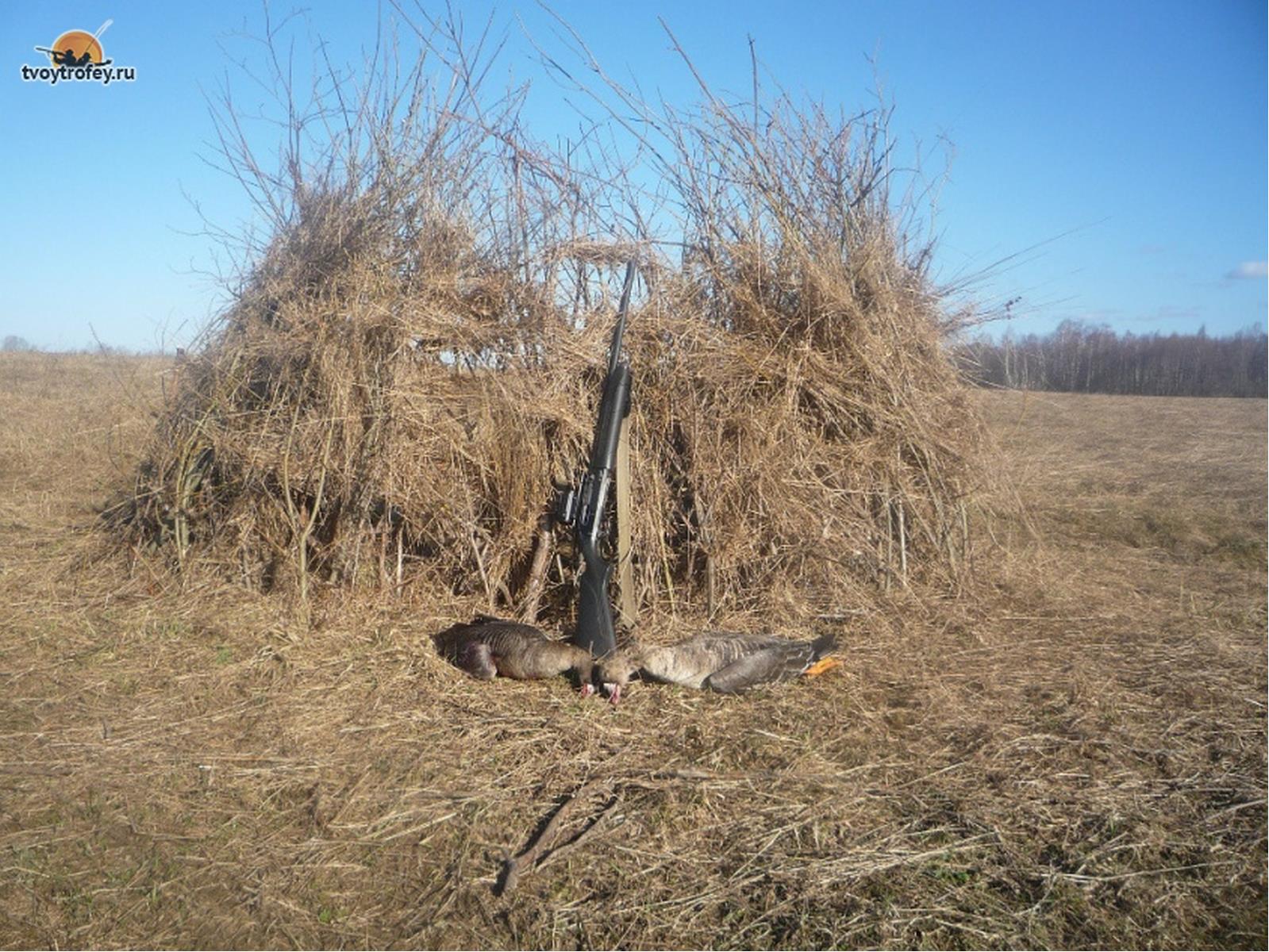 Будет совсем не лишним, если вы прикупите чучело вороны и будете его устанавливать на вашей засидке. Гусь будет относится к вашей засидке менее настороженно.