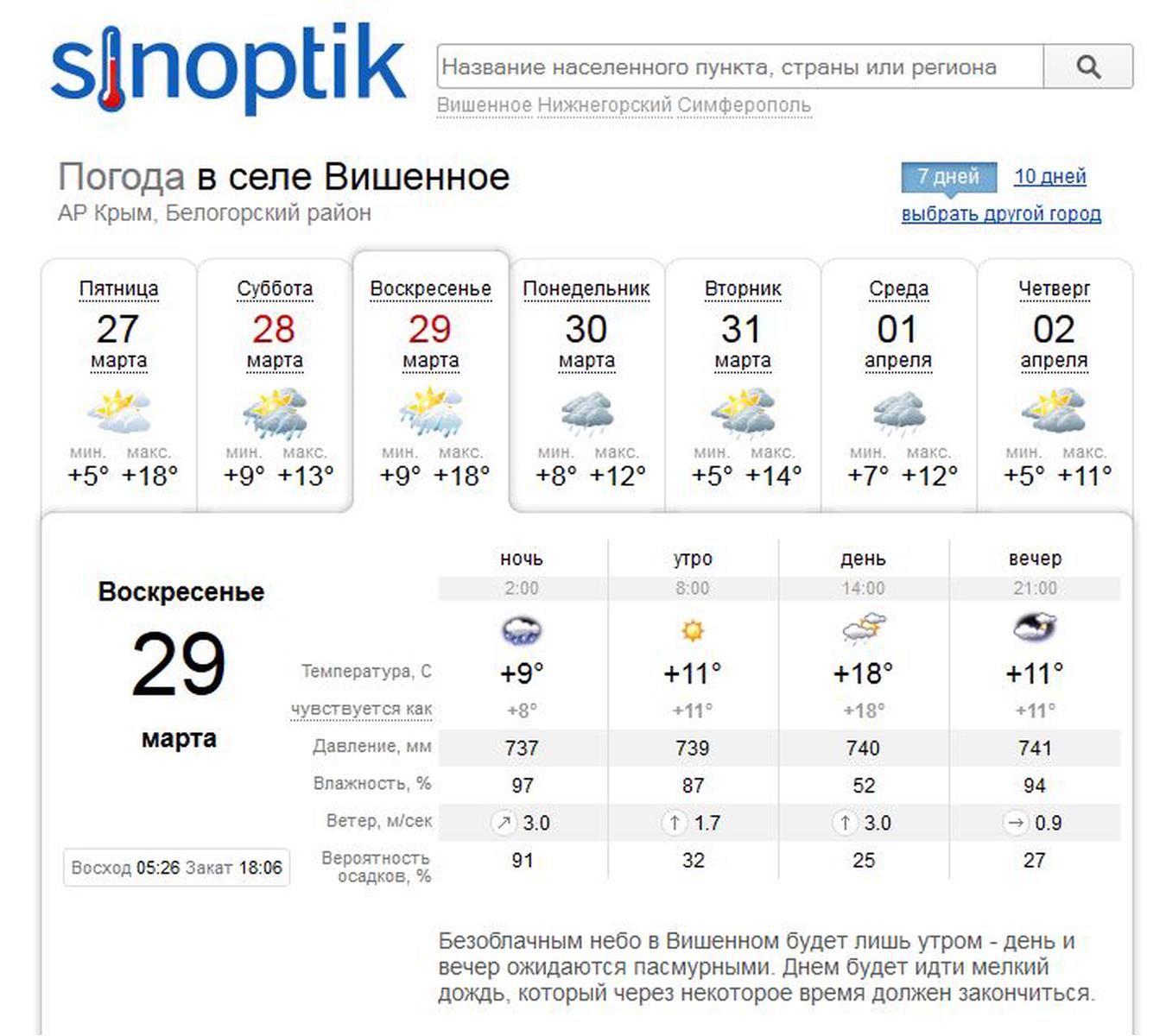 Вот прогноз на само Вишенное: