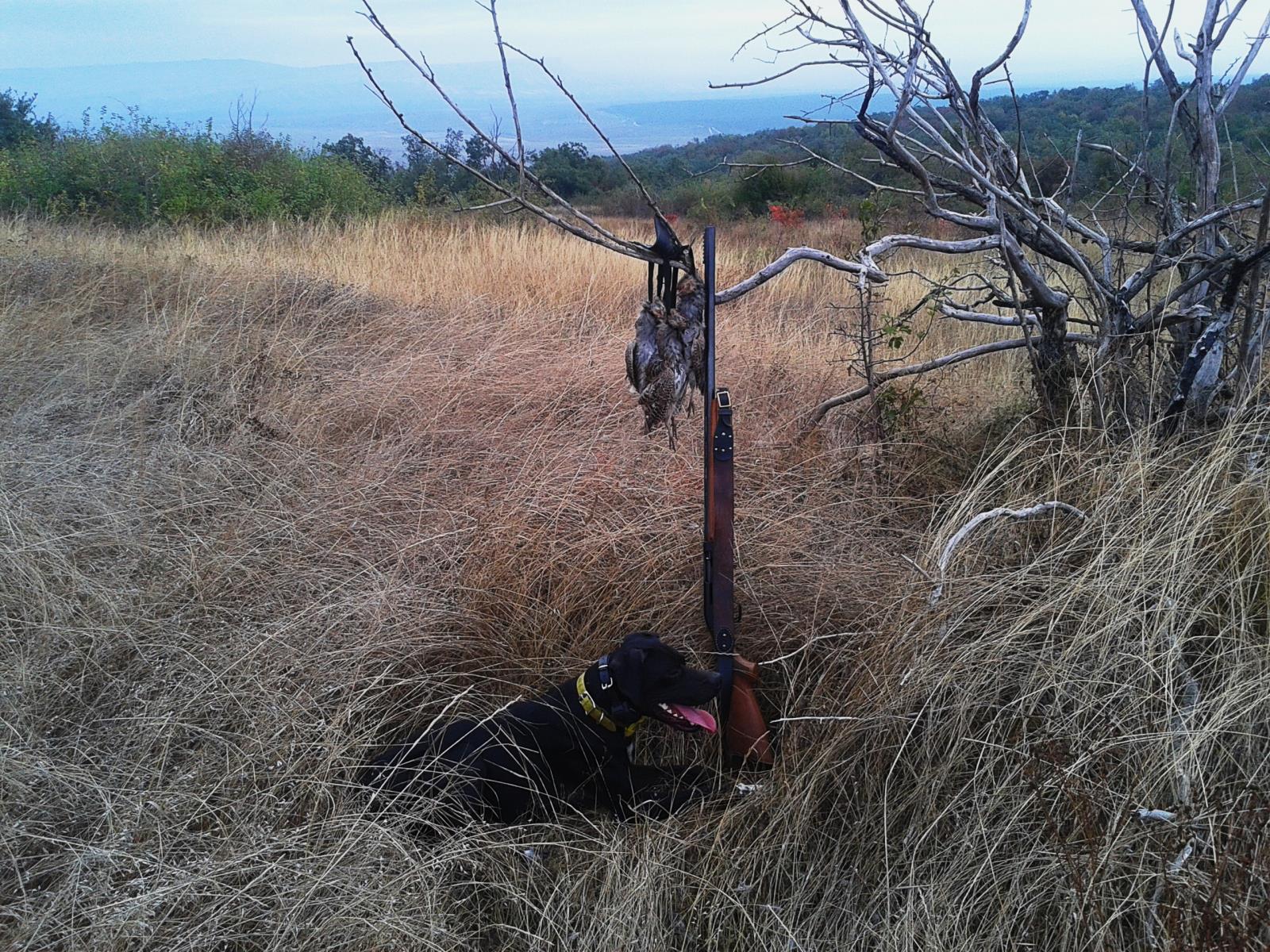 . Вечером в субботу вечорка - ноль. На ночлег домой. В воскресенье в 5.00 выезд на куропатку в Красногвардейский район. На двоих по норме. Но это всё мелочи. У Барохи (Эрд-Барон) сегодня ПЕРВАЯ почти самостоятельная продуктивная СТОЙКА
