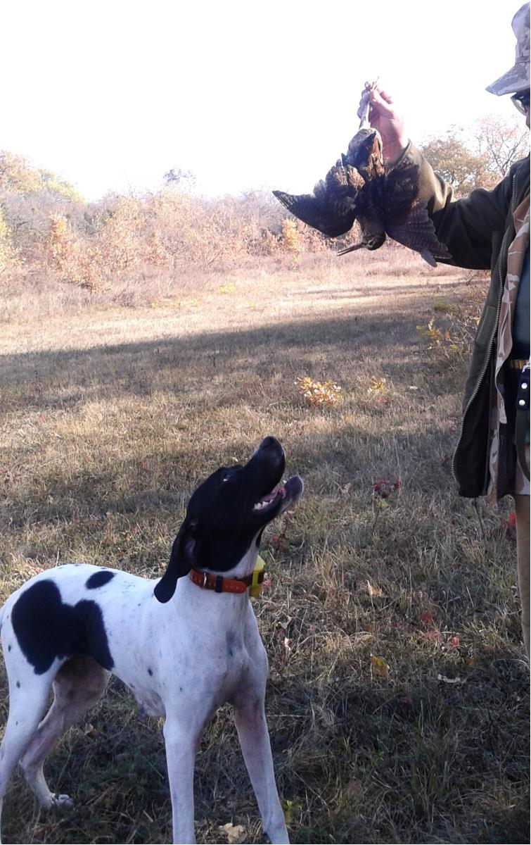 На форуме есть темы , посвященные охоте на вальдшнепа, куропатку, перепела. Но на все эти виды можно успешно охотиться с нашими пойнтерами ,- и даже одновременно,- там где "лесные" угодья граничат со "степными",- стоит лишь вызвать собаку из чащи и указать ей рукой на прилегающий участок поля.........
