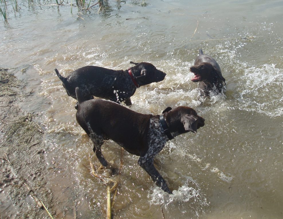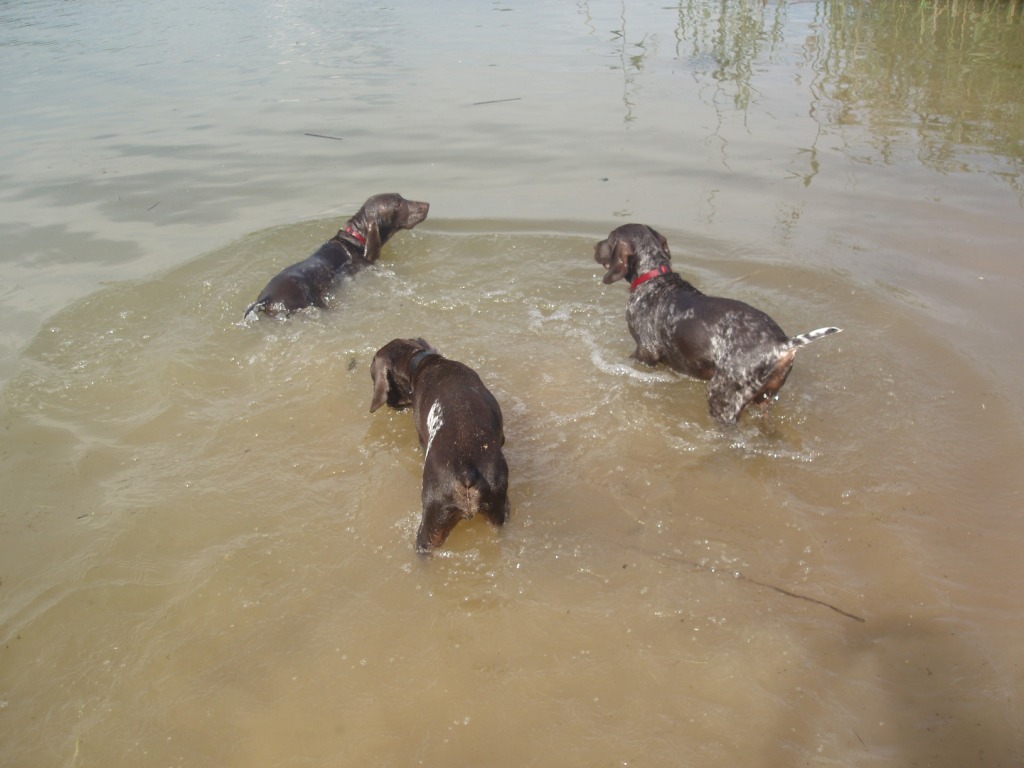 Щенки подросли, осваивают водоемы, приучены к машине и ждут своих охотников.
