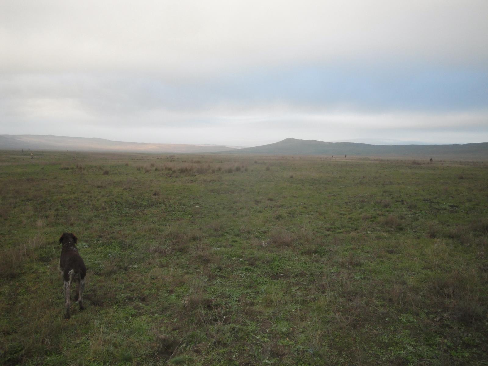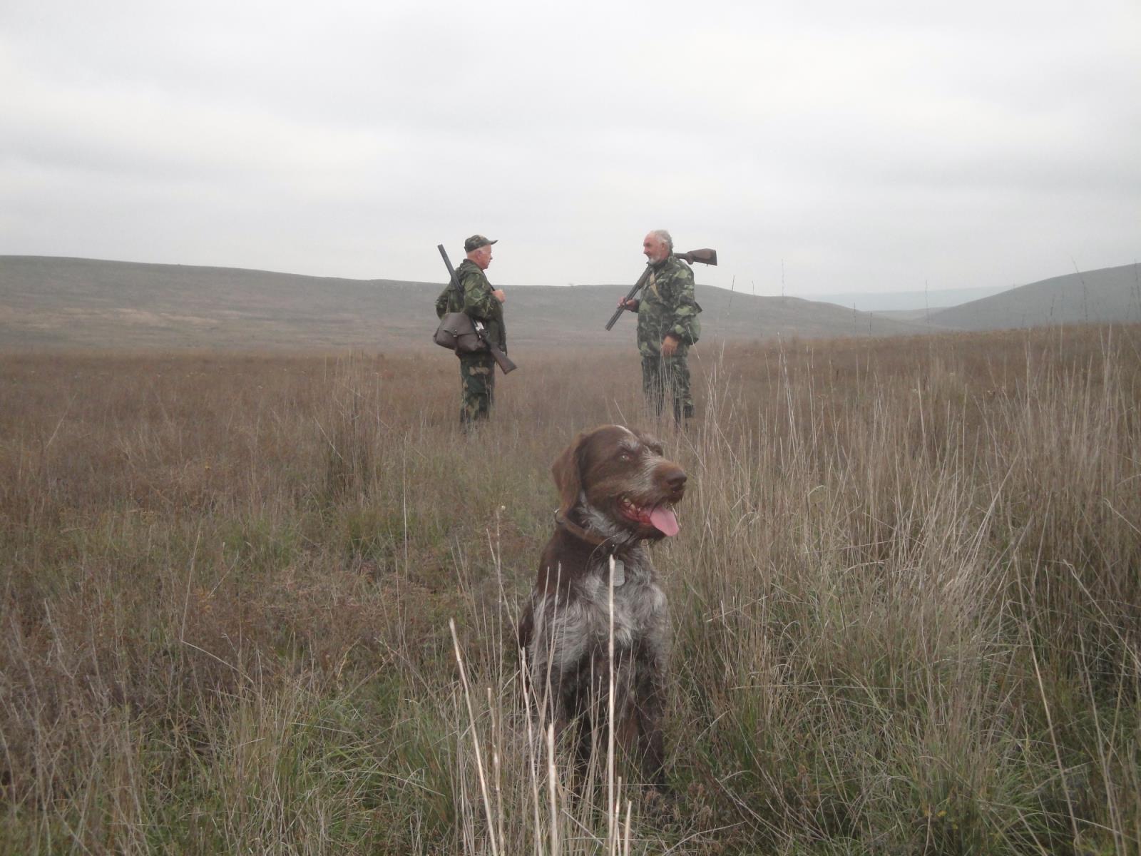 Обменявшись любезными словами с "начальником охраны" в присутствии милиции в 7-00 заехали в виноградный рай. С утра выпала обильная роса и решили начать с бугров, перепаханного заброшенного виноградника. Топтали его часа два подняли стаю куропаток, зайца НЕТ. Зашли по буграм на виноградник, южными склонами подняли две стаи куропаток, зайца НЕТ. Случайно на переходе с бугра на бугор зацепили лощину с виноградником и пошла потеха. Заяц лежит плотно, поднимался прямо из под ног или сзади пропустив охотника, уходил сразу поперёк рядков, для стрельбы не очень удобно. Но приспособились быстро и за два часа закончили охоту. Создаётся такое впечатление, что заяц сгруппировался в одном месте, замечаю это не первый год, причём в следующее воскресенье в этой лощине зайца уже не будет, придётся поискать в другом месте.