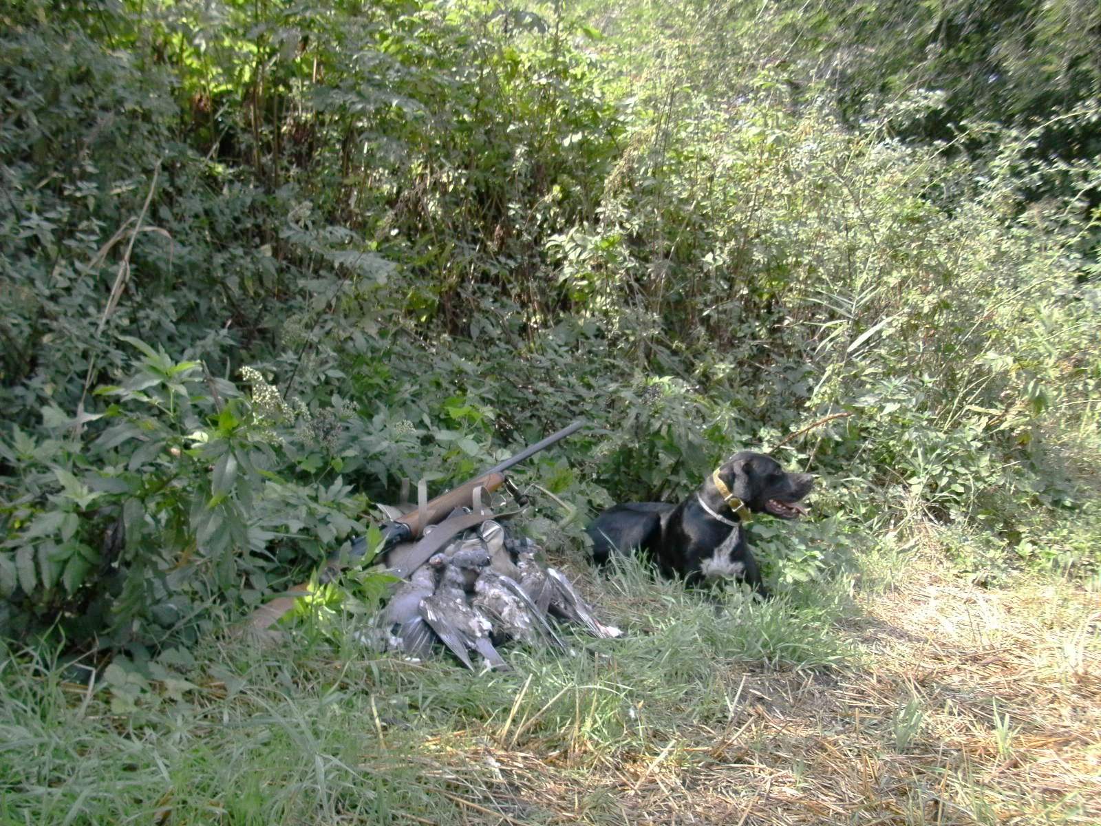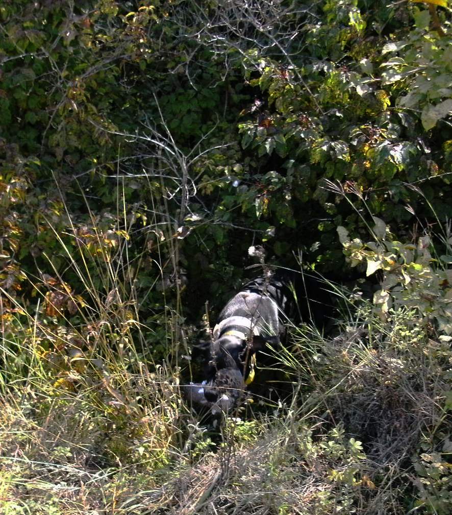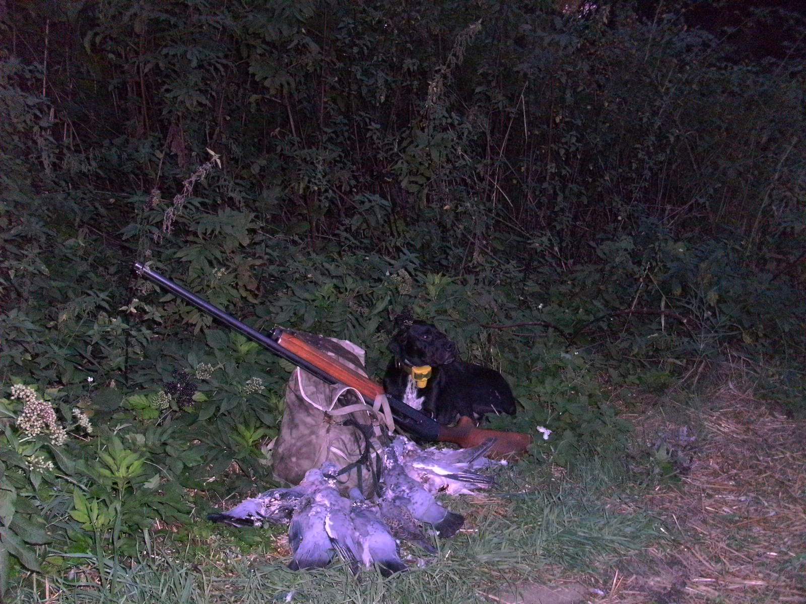Этого пойнтера, Блэкки, уже учить подаче голубя не нужно; с ним можно ПРОСТО охотиться,-не заботясь о том, куда падает битая птица.... С Джо Блэком отохотились утро 24 августа; отстреляли половину "Дневной нормы отстрела",- и пошли спать.....