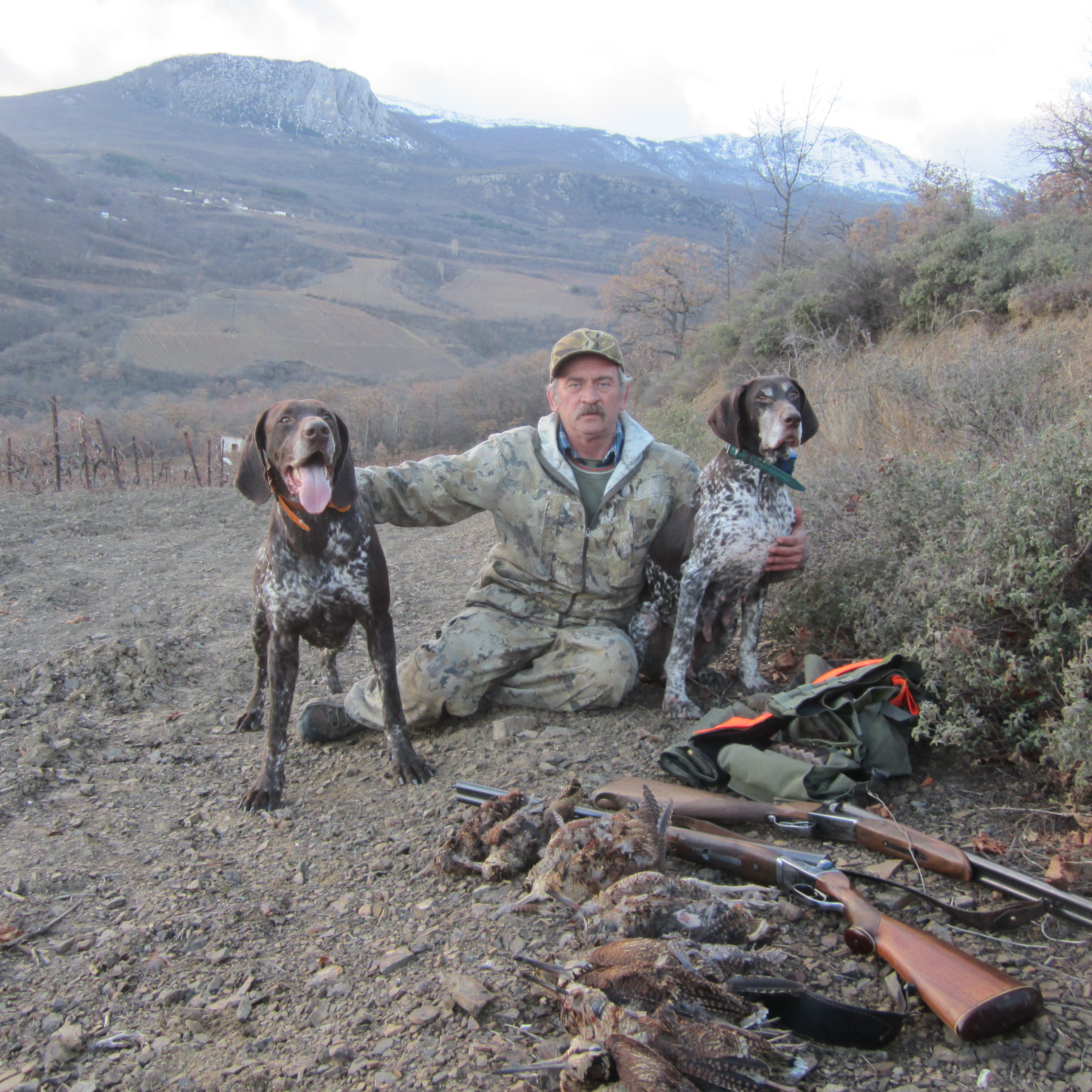 Собачки молодцы-хорошая скорость на протяжении всей охоты,красивейшие стойки,безукоризненная подача. Я был просто счастлив от возможности поохотится с такими профессионалами. А я, видать понравился Капи.