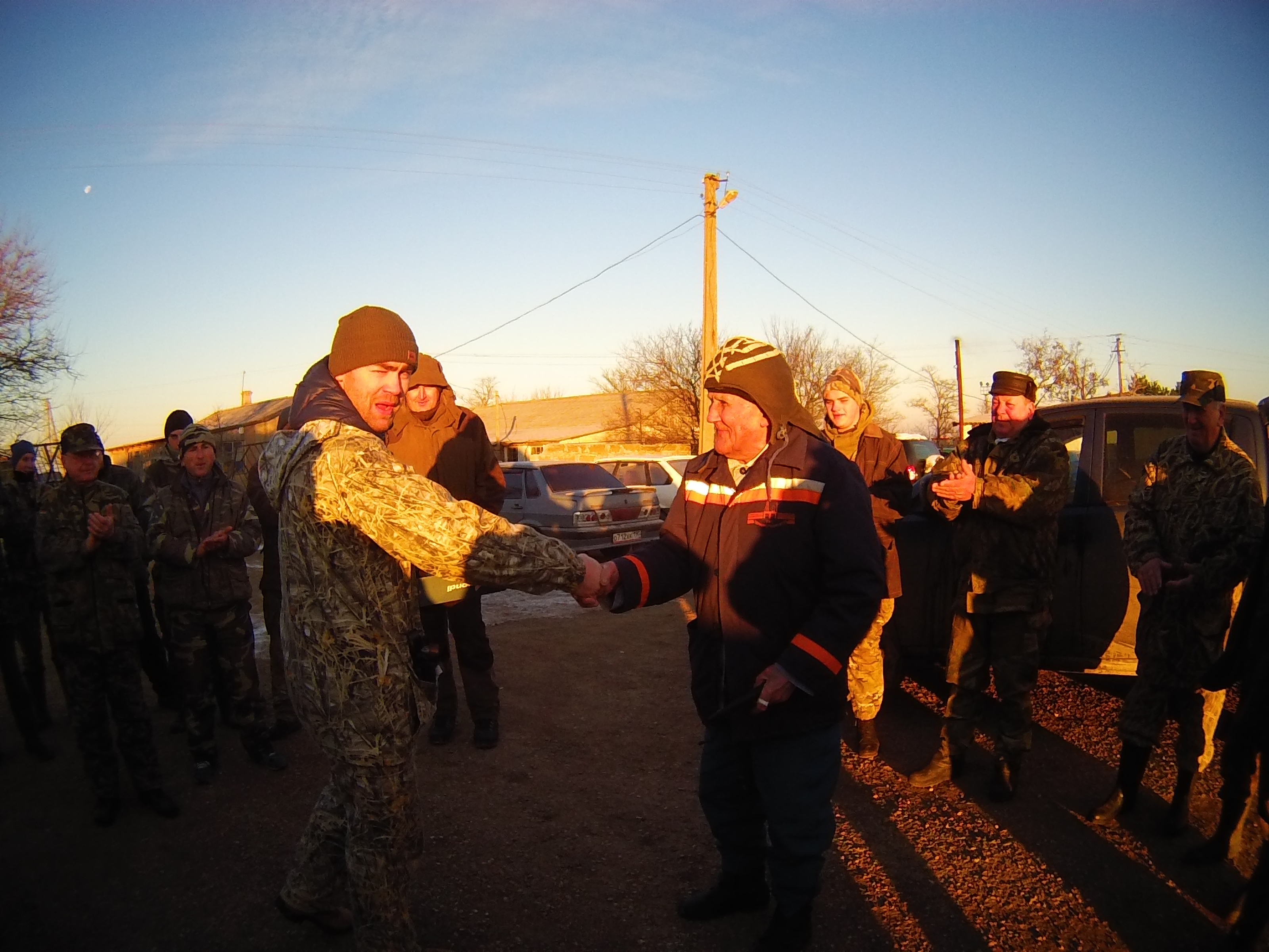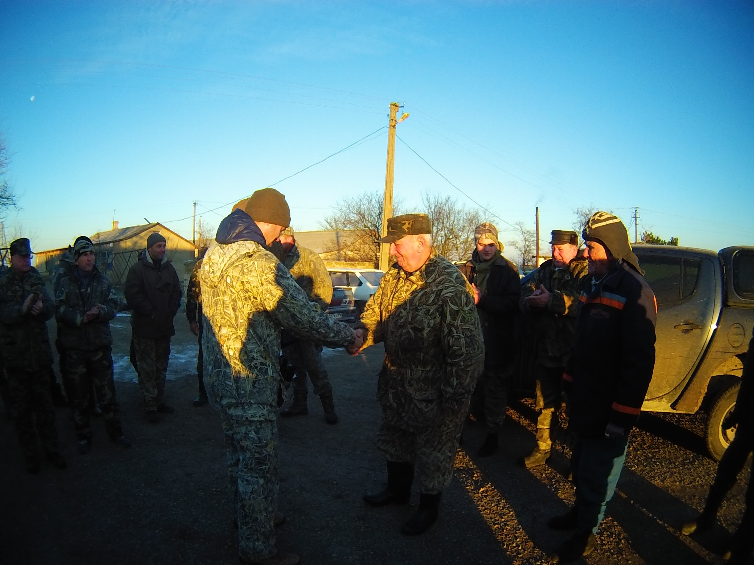 Поддерживая традицию Сакского РОО КРООР,Сегдня провели ветеранскую охоту,в Черноморском фелиале РОО КРООР.Сбор на 9-00 в Кировском охот-коллективе,Черноморского Р-НА.в 9-30 вышли в поле,погода была очень благоприятная,мороз -8,ветра 0,прошли одно поле,туда обратно,зайца в угодьях предостаточно,за 2 часа все были со степашками.Поздравили ветеранов,вручили подарки,обед 100 гр за воротник и по домам,ветераны довольные успешным выходом в поле,наличием дичи.