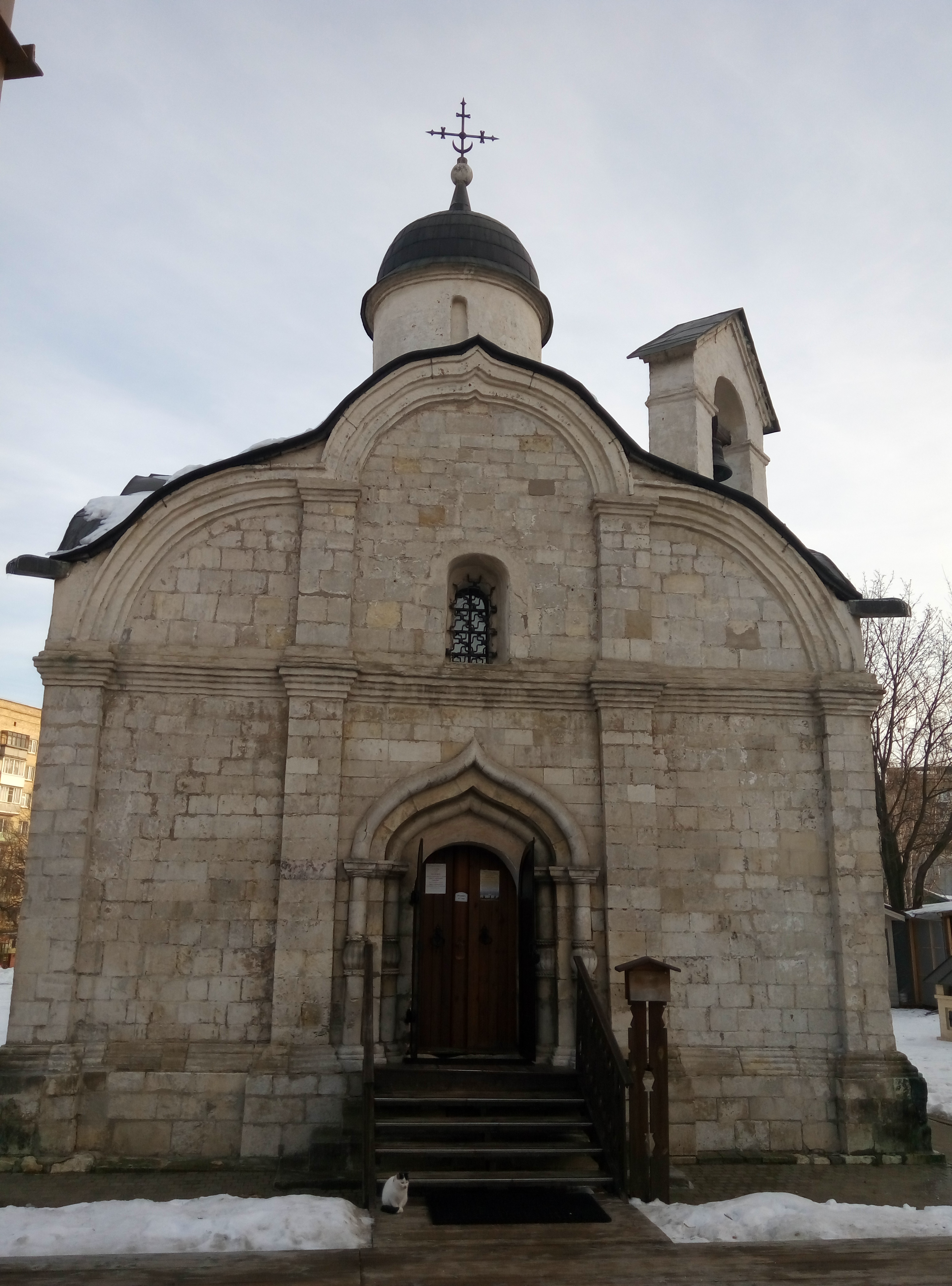 Изящная белокаменная постройка с минимумом деталей много веков хранила чудотворную икону с частичкой мощей св. Трифона и тайну своего рождения. Только в 20-х годах прошлого века реставраторы обнаружили на ее стенах древнерусское граффити (процарапанную надпись на камне), которое удалось датировать 1492 годом.