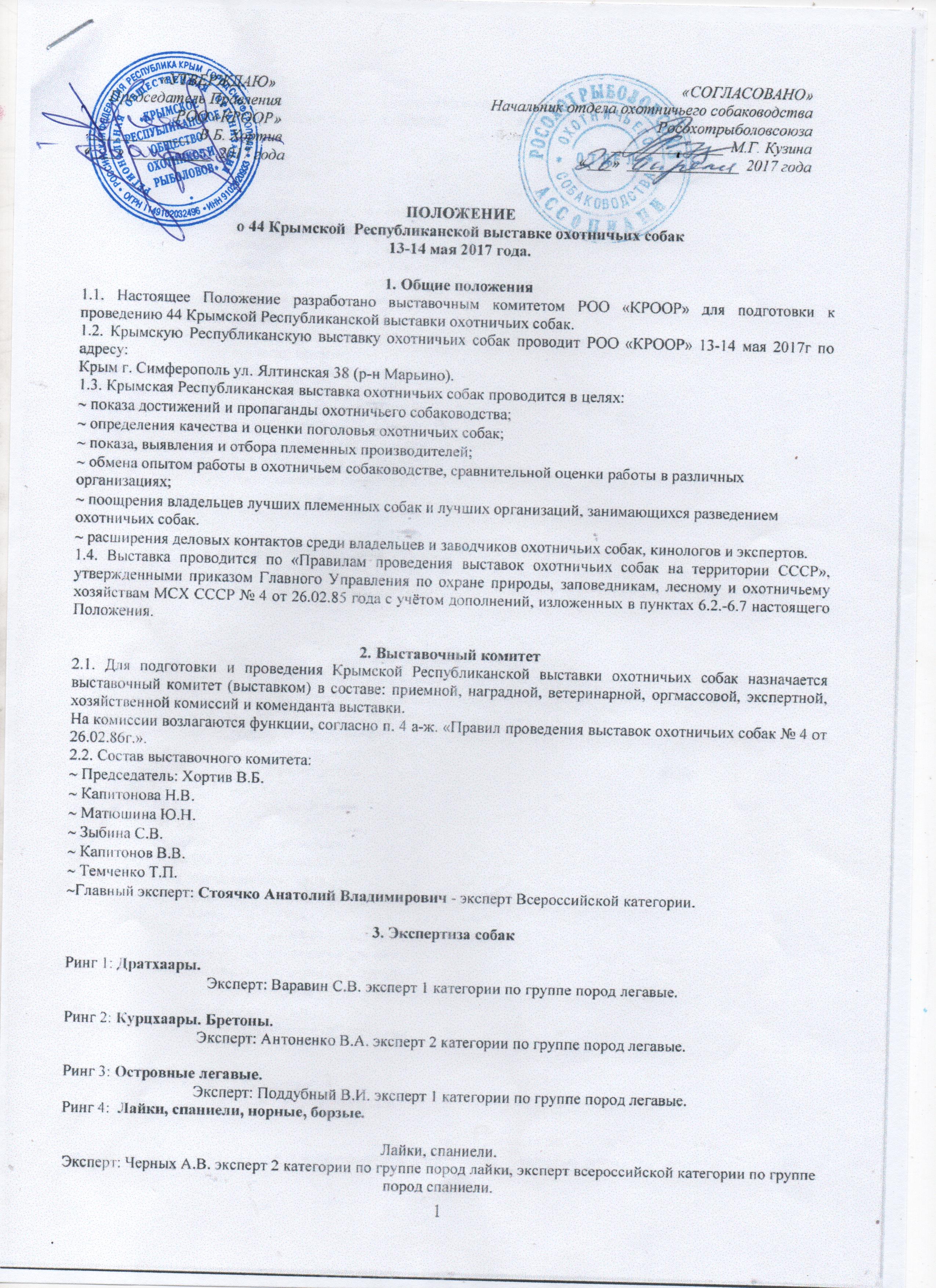 1.2. Крымскую Республиканскую выставку охотничьих собак проводит РОО «КРООР» 13-14 мая 2017г по адресу: