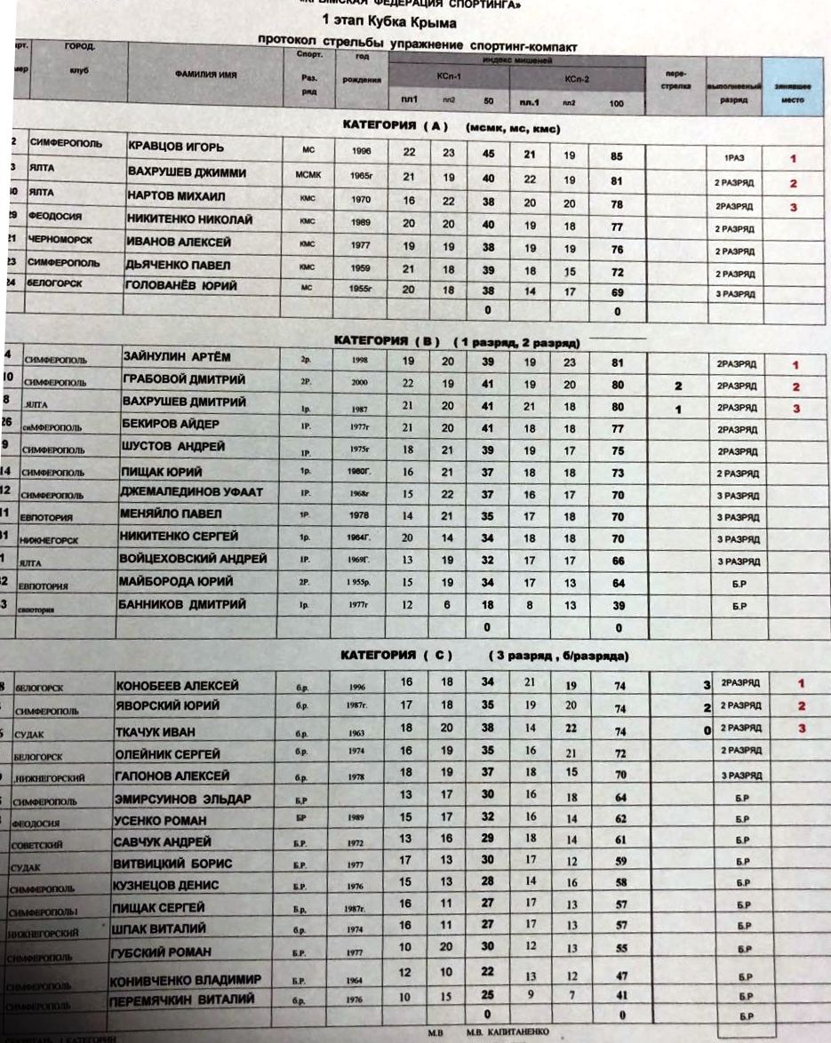 Старый филин писал(а):3 марта 2018 года на ССК «Старый Филин» состоялся I этап Кубка Крыма по компакт-спортингу (100 мишеней)! В соревнованиях приняло участие более 30 спортсменов!