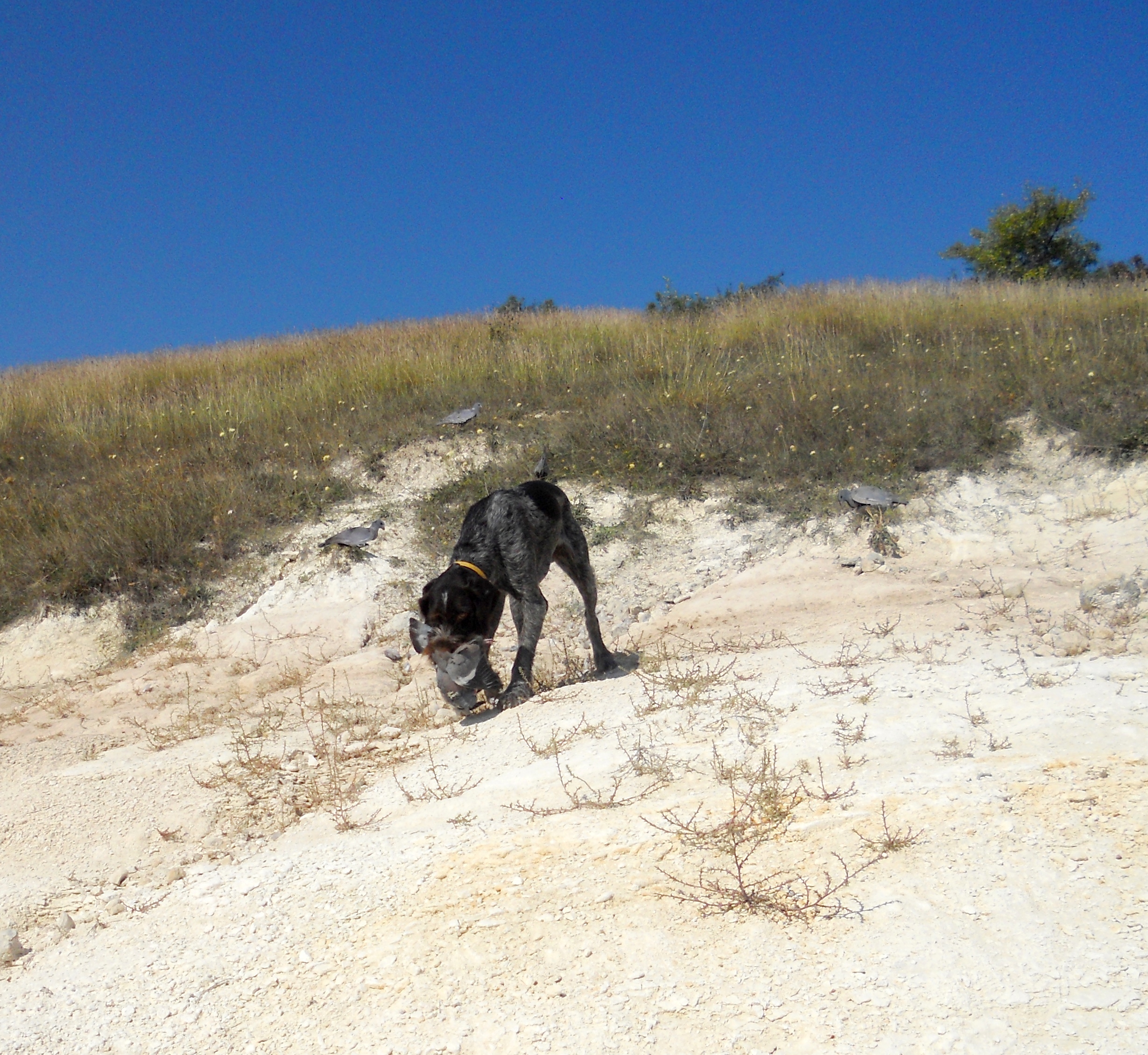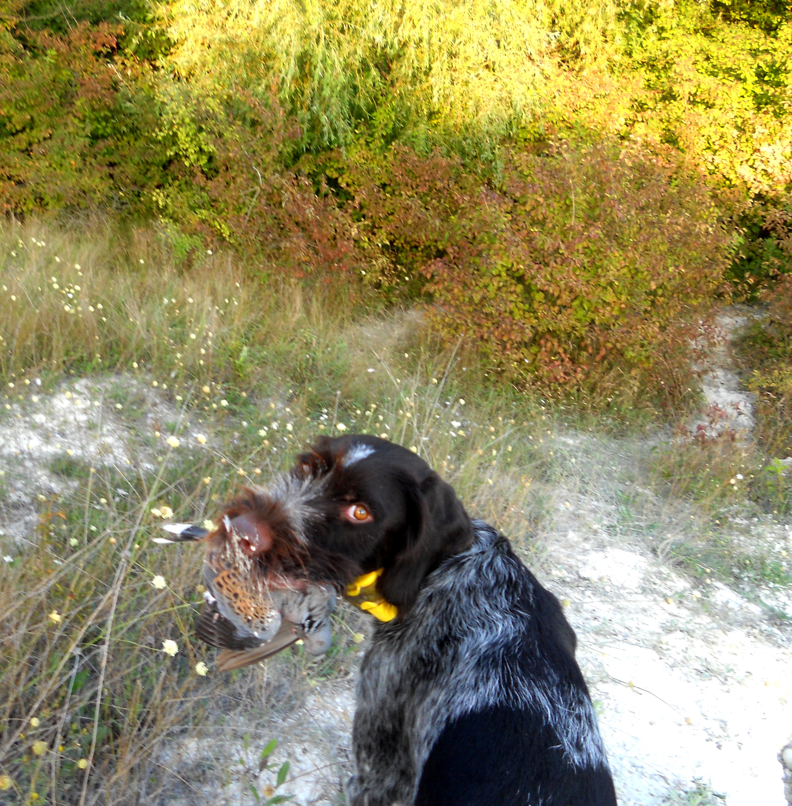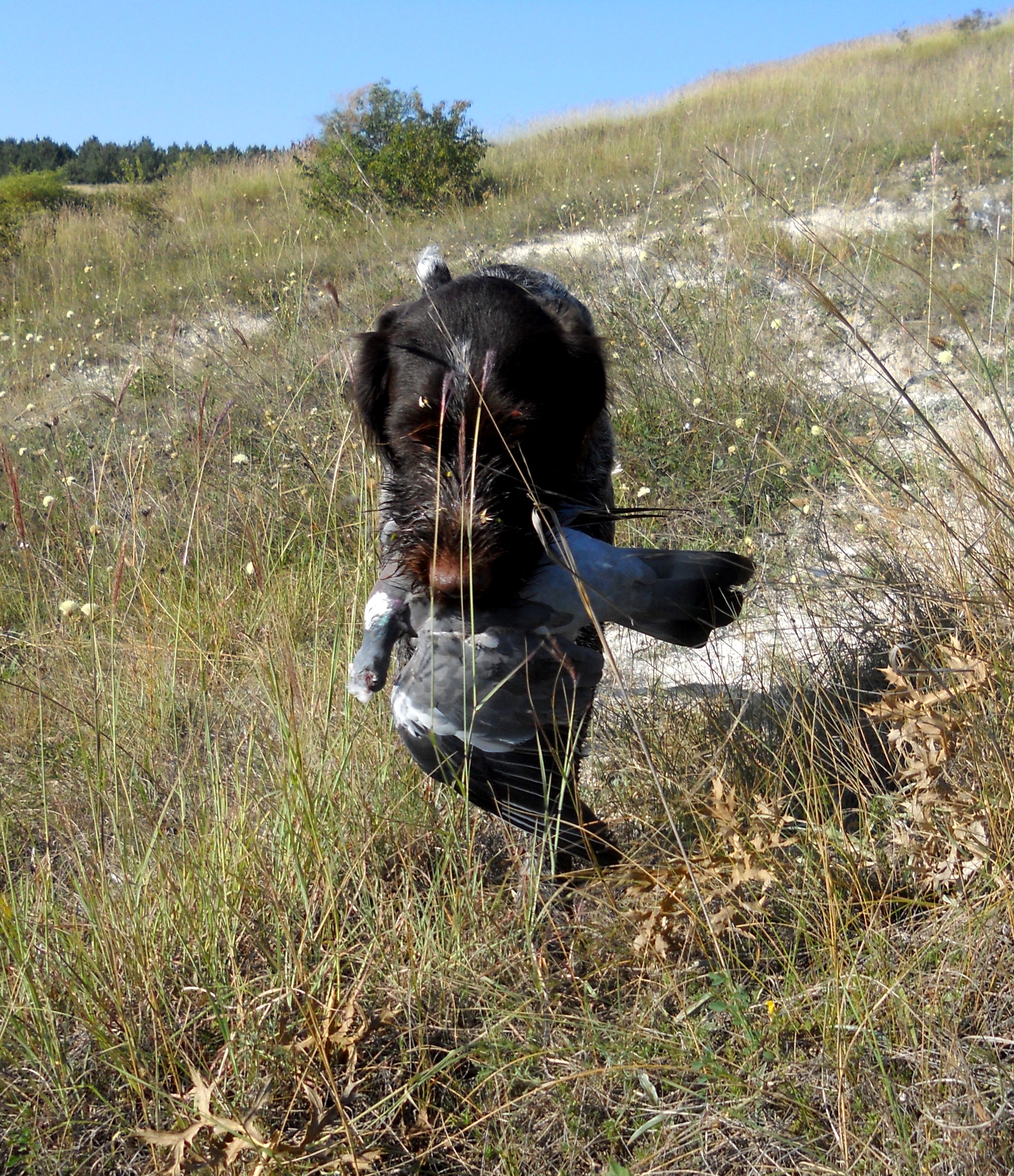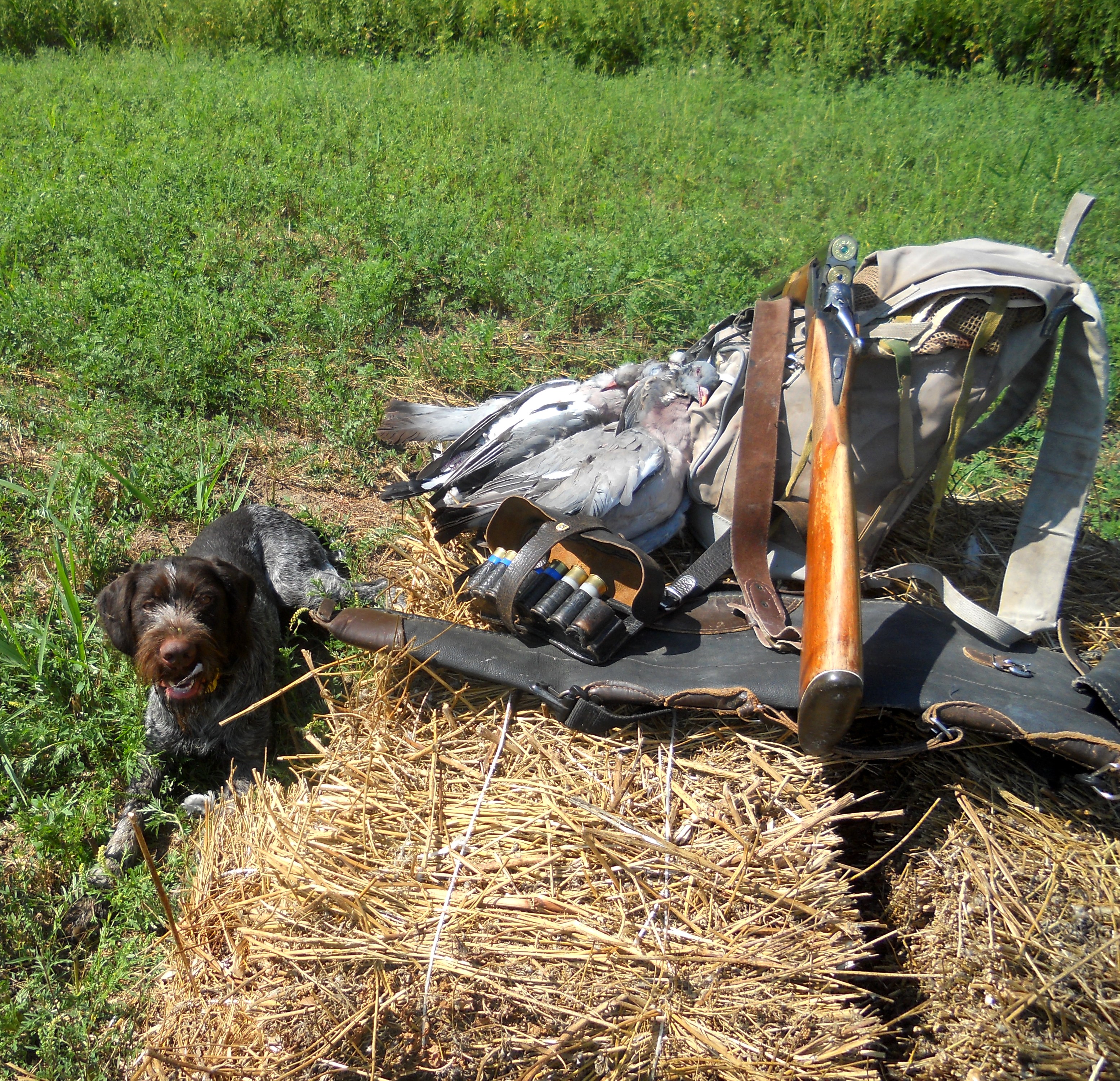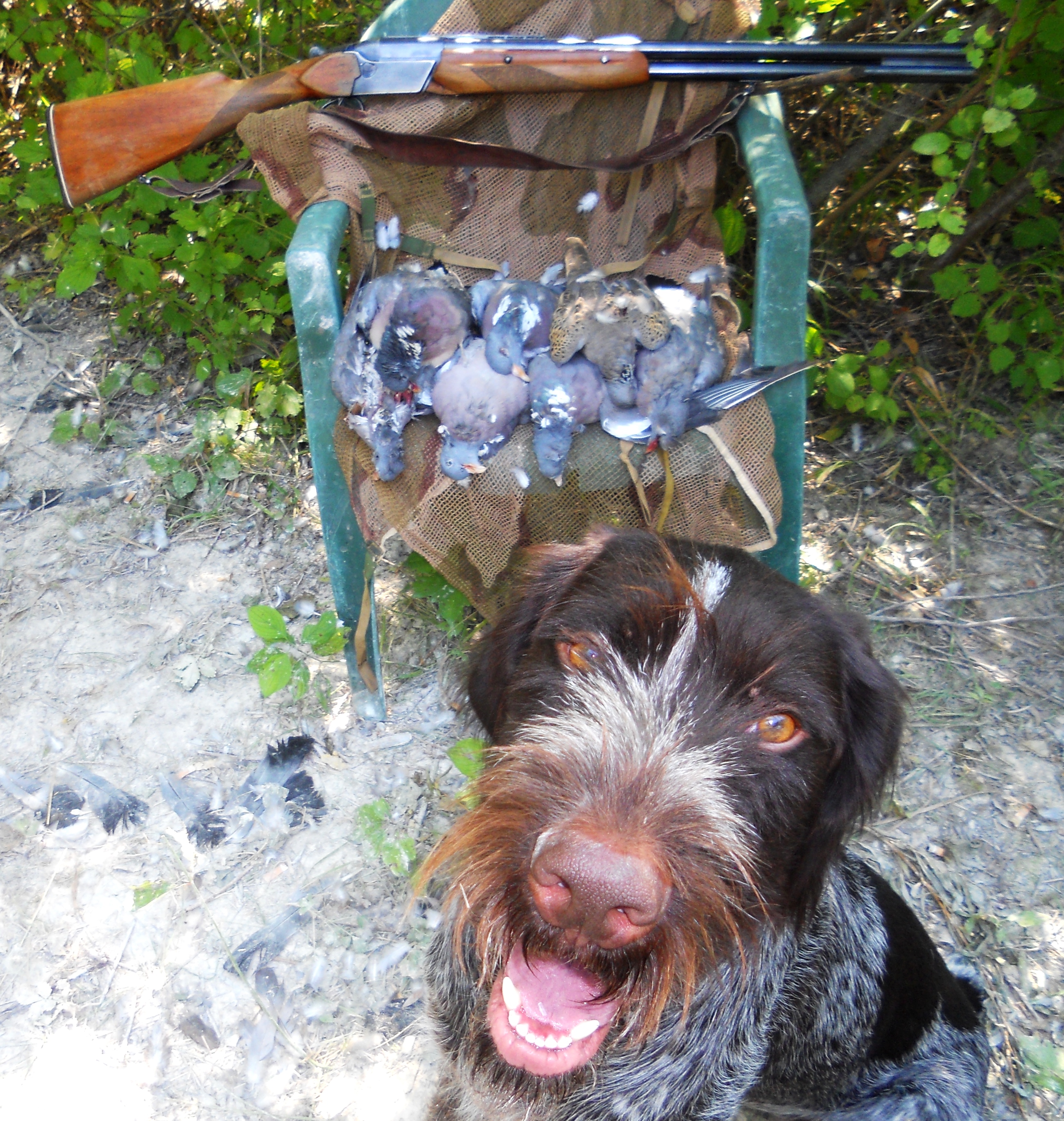 Но и с дратхааром никаких проблем не возникло; домашние уроки он усвоил превосходно (+то, что принято называть "генетикой"))) сыграло свою роль; подавал вяхирей и горлиц с грунта и из зарослей , разыскивал подранков, за одним даже по воде погонялся, - при этом без команды скрадок не покидал. Словом, чрезвычайно меня порадовал.