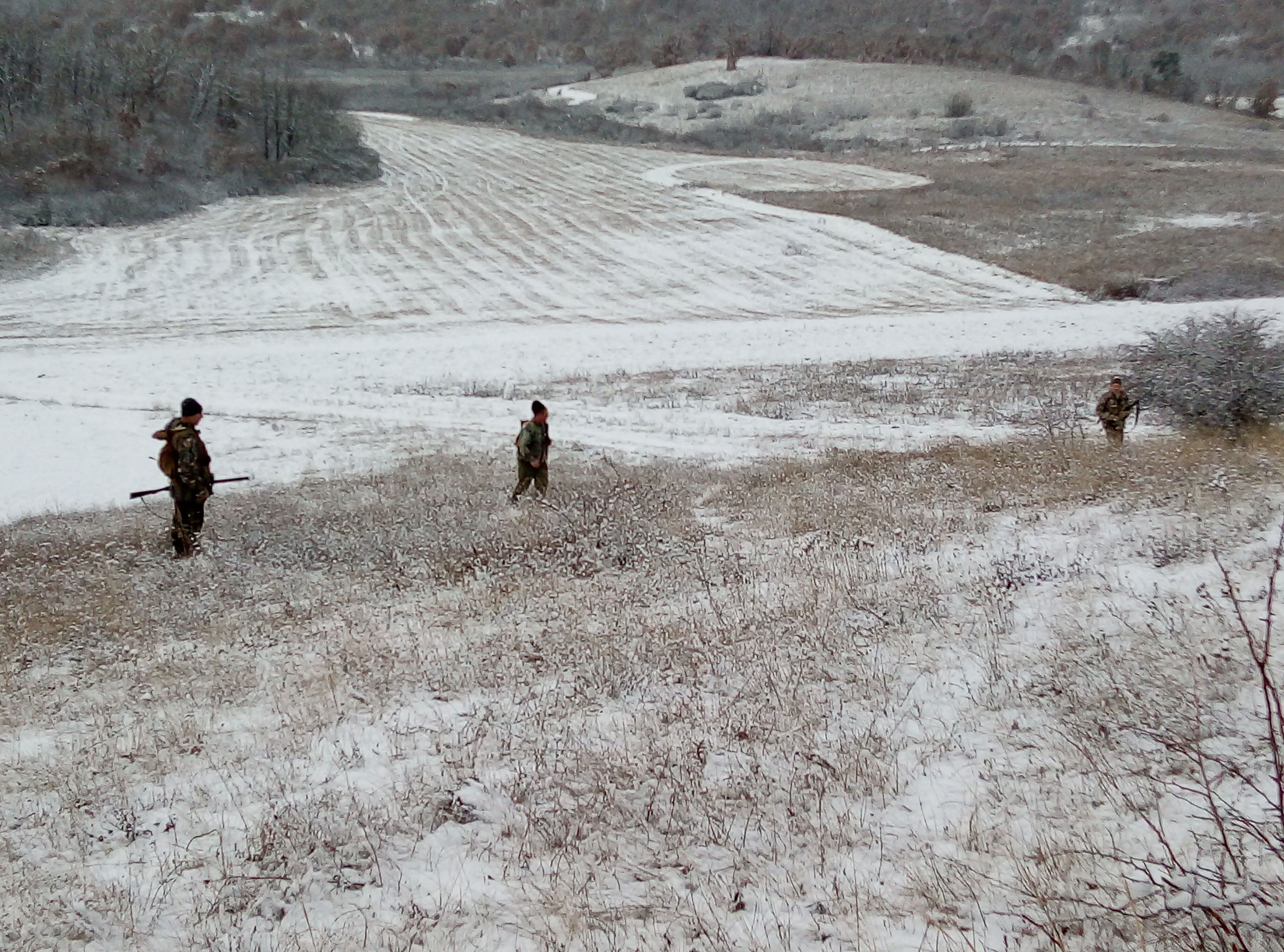 В прошлое воскресенье выбрались компанией из семи человек, плюс три собачки. Ходили примерно до 15.00ч.вместе с перекусом Добыли семерых зайцев. Подняли около 15 шт. В основном лежал в стерне, два в пахоном виноградники. До обеда ходить было ещё легко, морозщик держал землю, после обеда все оттаяло и месили грязюку. Охота одним словом удалась, заяц был настрелялись и находились
