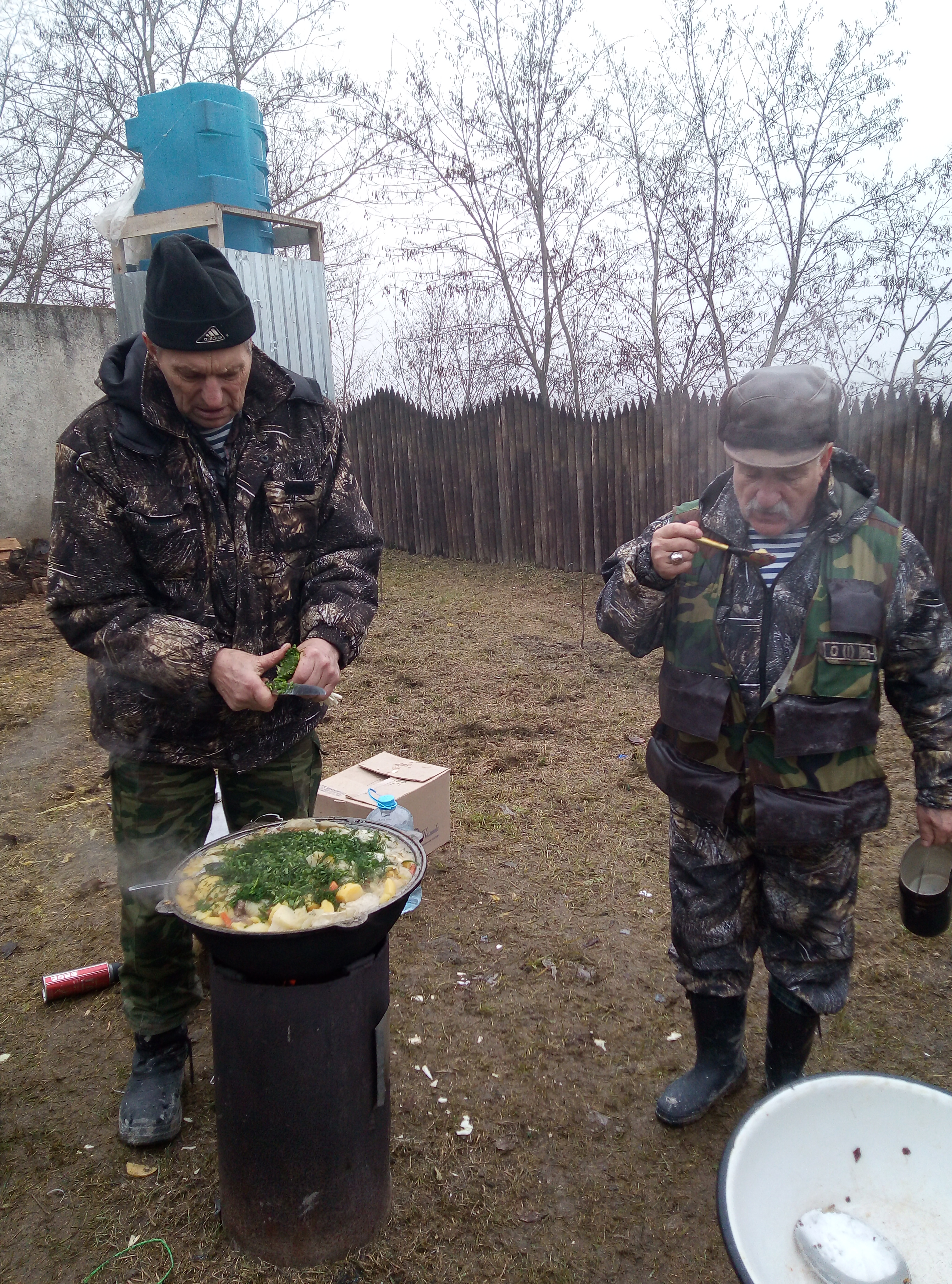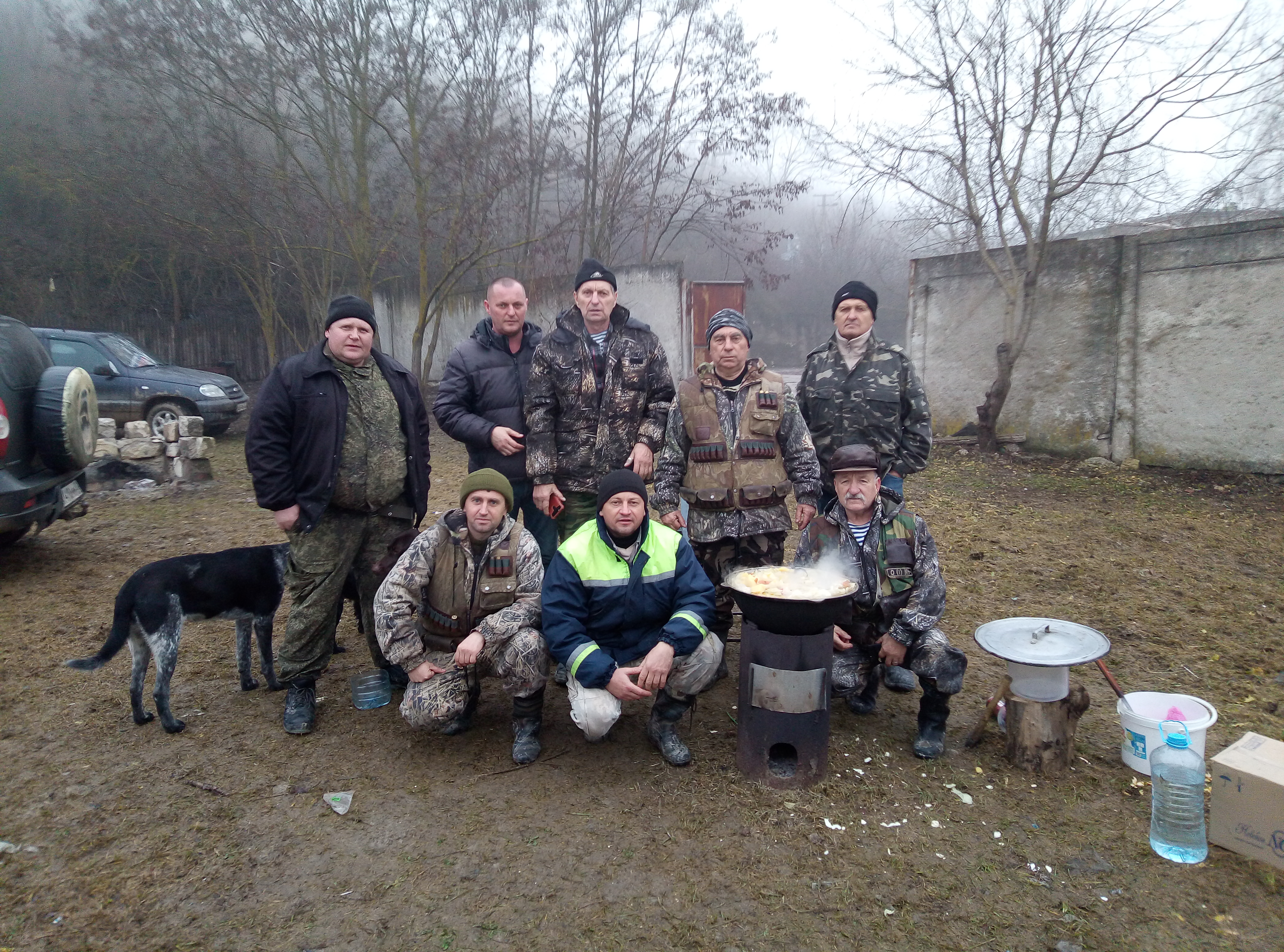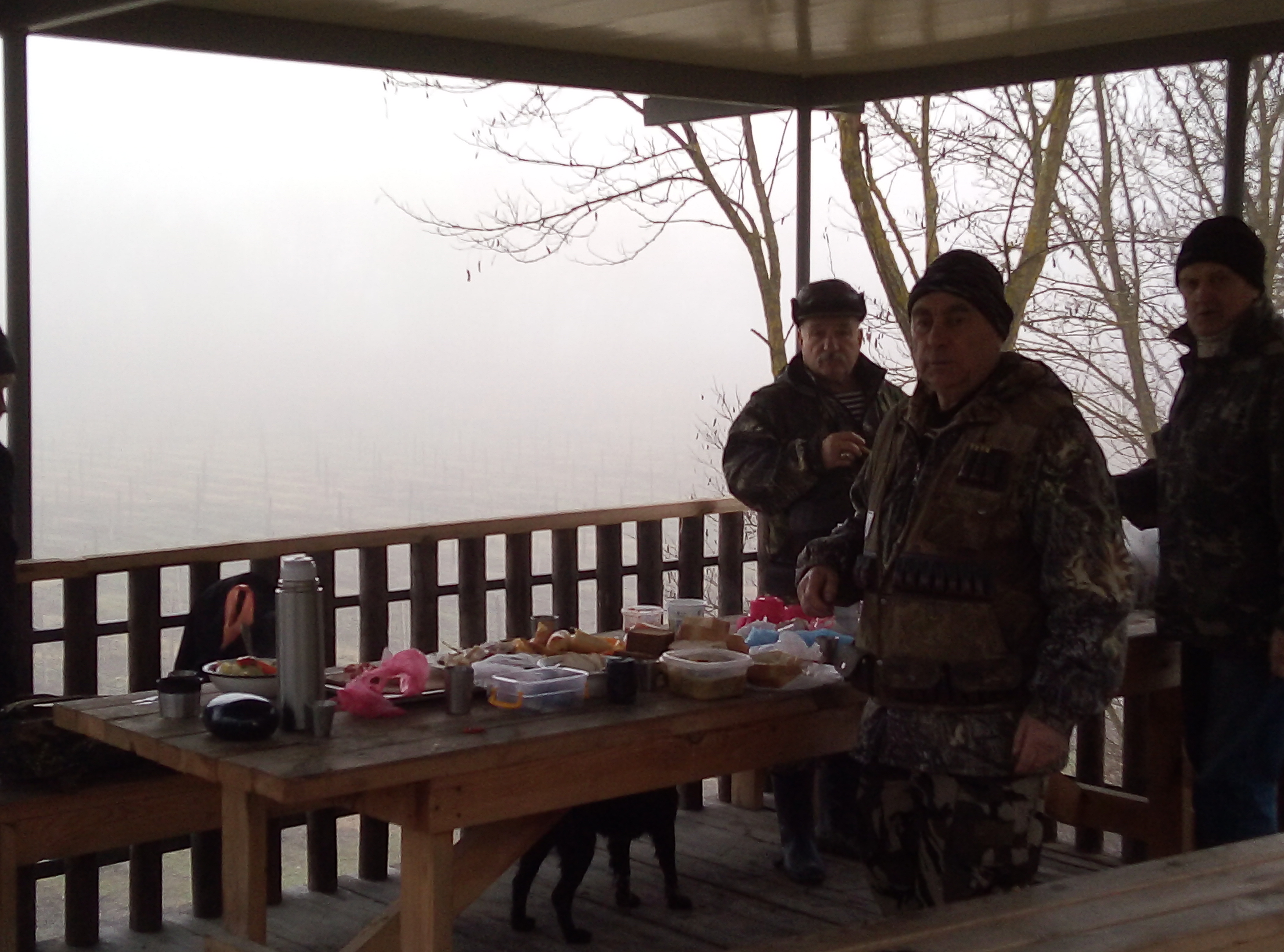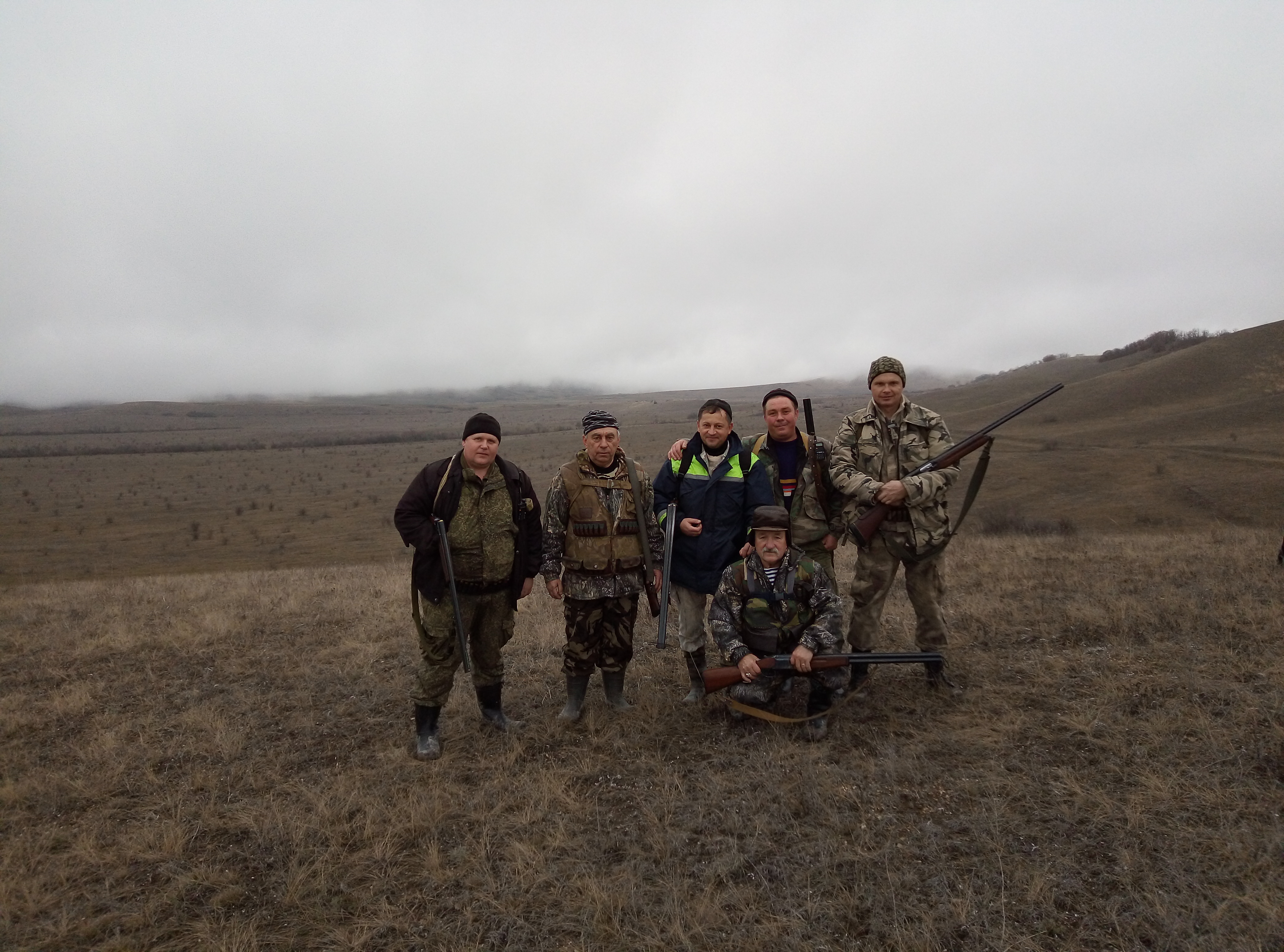 Ну вот и наступило закрытие на зайца,да и в целом и охоты Собрались компанией из девяти человек плюс четыре собачки.В планах было походить часов до 14.00,но здесь вмешалась природа и внесла свои корректировки,закрытие есть закрытие Сделали первый загон под 4 км.подняли четырех добыли двух зайчиков.На пригорке сделали не большой привал,т.к. местность , то в верх ,то в низ.Коллективное фото , облака медленно опускались на предгорье,одним словом красота.Делаем еще один загон, но где-то мнут через десять "облака" нас накрывают так , что дальше 20 метров абсолютно не чего не видно.Азарт берет свое и решаем идти цепью,друг от друга по десять метров по целине.Но минут еще через десять понимаем , что и это стратегия не помогает.Туман такой густой, что цепь рвется и мы начинаем искать друг друга.В итоге собираемся в организованную толпу и идем к машинам по проселочной дороге.Наша охота заканчивается в 11.00 А дальше нас ждала шурпа,какое закрытие без шурпы