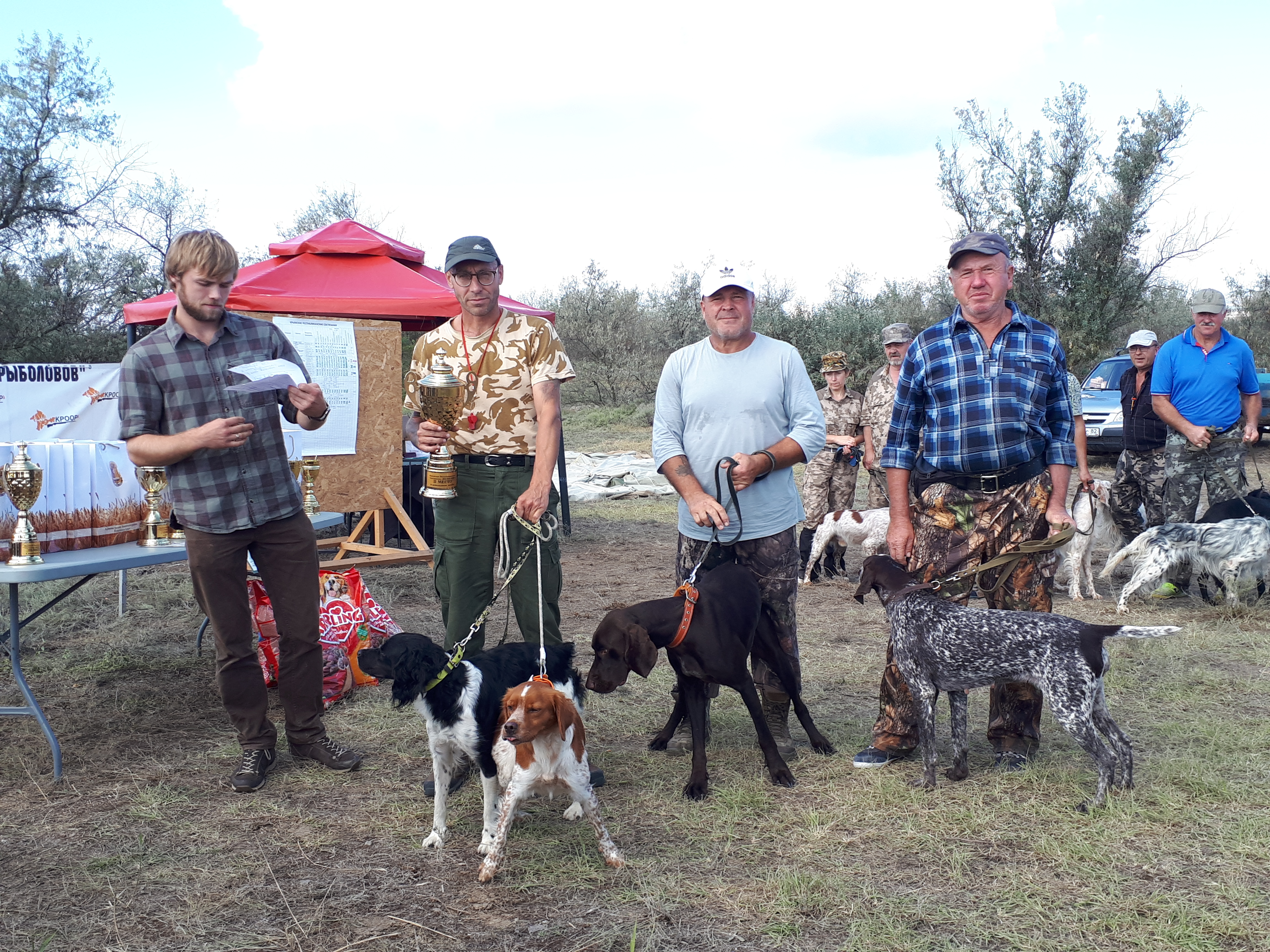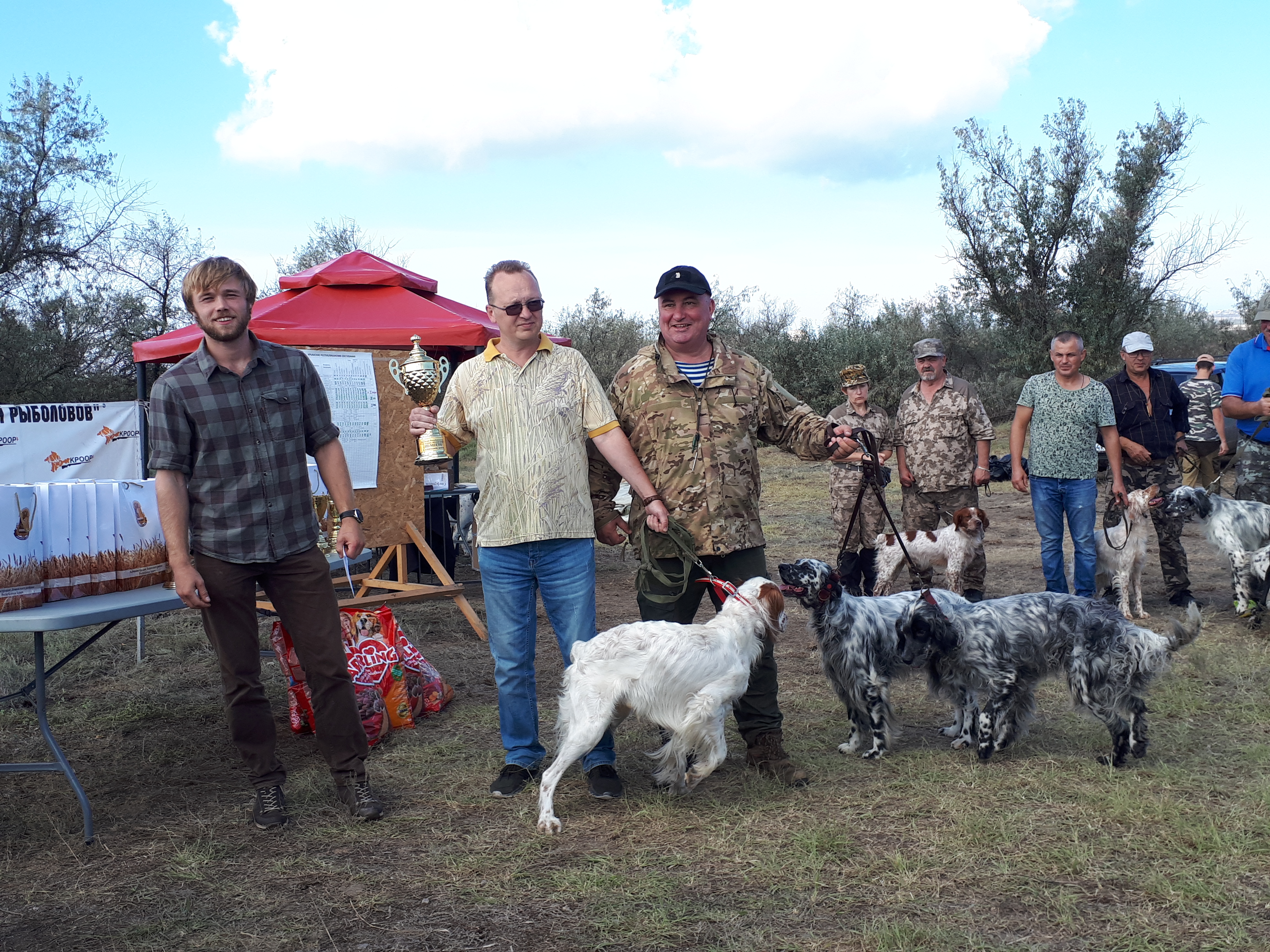 Первое командное место и кубок у команды Черноморского КРООР, в которой дипломированы все 4 собаки, в составе команды и победитель состязаний Ферри-Брета Конобеева. Второе место у команды Раздольненского КРООР, в ней отработали на диплом также все собаки. Третье место у команды целиком состоящих из московских английских сеттеров, владельцы которых пребывали в Крыму на отдыхе.