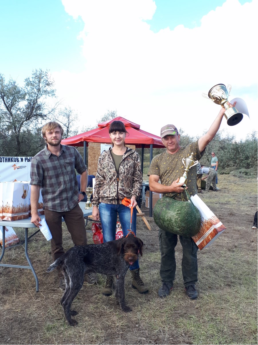 1 место в личном зачёте: ПОЛЕВОЙ ПОБЕДИТЕЛЬ дратхаар "Ферри-Бретта Лисовичи Ранчо" вл. Конобеев А. 19-8-8-5-5-7-5-5-4-8-8=Д-II-82 б.,