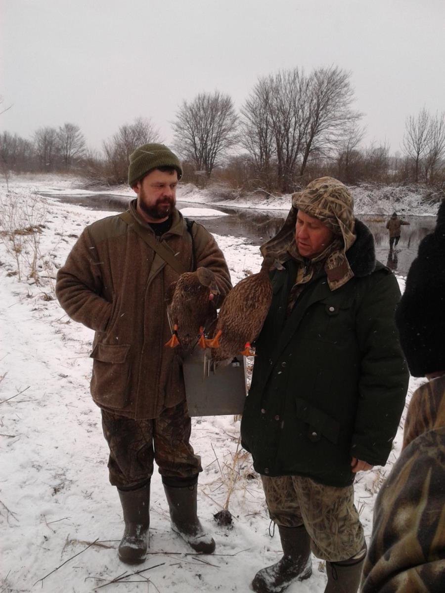 Дважды поздравляли участников "с полем" - в первый раз Sibir поймал сорвавшуюся с ногавки подсадную голыми руками. Второй раз - когда ловили селезня (домашнего) - убежавшего к своей подсадной. Сделав "свое дело" он снял ее с дистанции, поскольку работать она уже дальше не хотела.