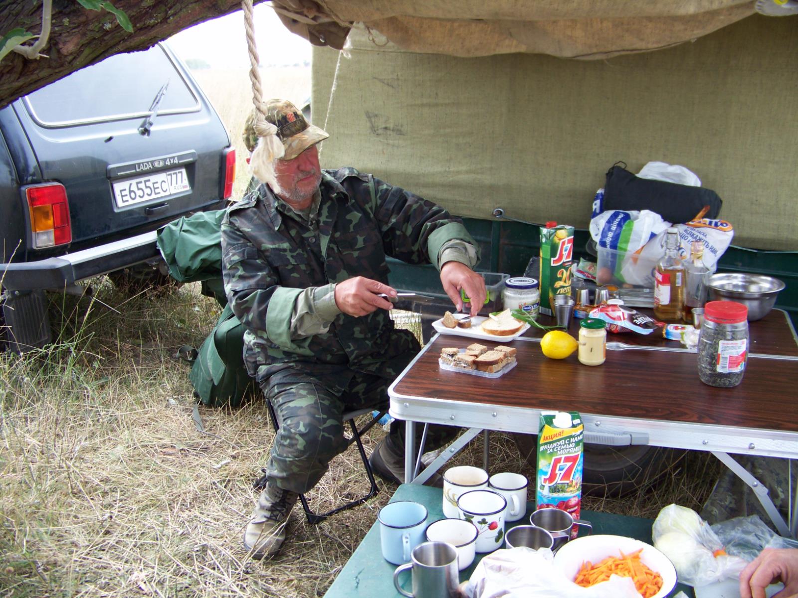 Вот мы и на биваке. Не прошло и полу часа работа закипела. Такое впечатление что каждый знает свое дело и все действия нераз повторены и выучены до автоматизма. Сергей шеф! Дима, вице шеф! Володя, просто водитель, а мы подмастерье. За ребятами плов, за нами шурпа. Блин, надо не ударить лицом...