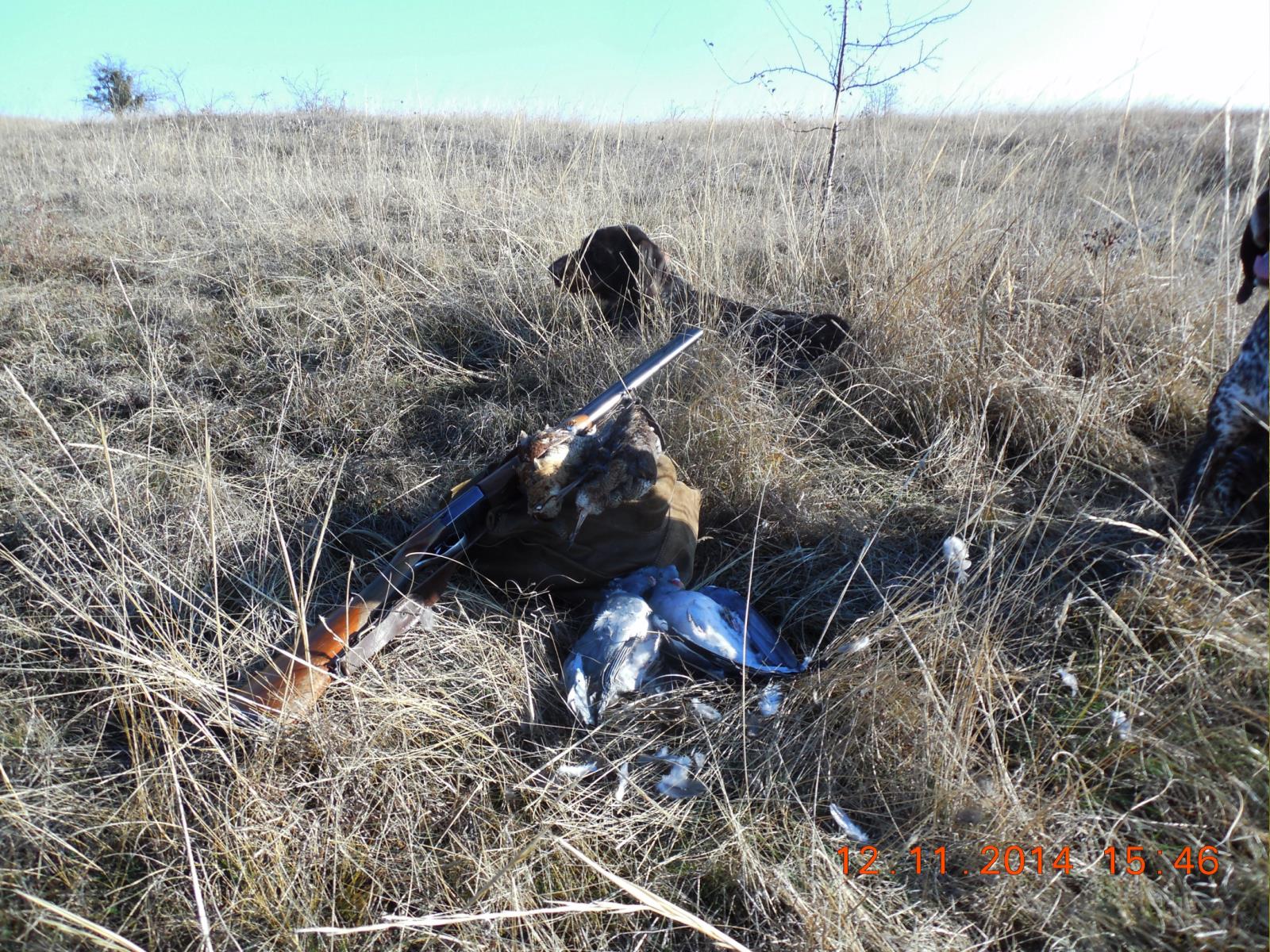 Подъемов (работ) - 6 . Стрелял - троих; добыл - 2. В тумане пару раз удачно налетели стаи вяхиря- произвел 2 выстрела из "дальнего" ствола. Вяхиря было ну ооочень много.