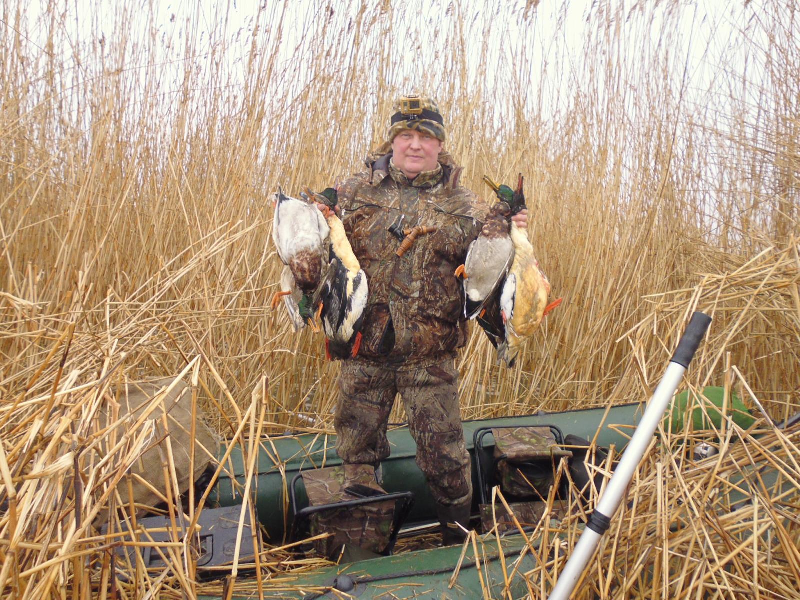 10.10.15 г., я выехал на первую в сезоне охоту на уток, взяли с товарищем двух подсадных и поехали в плавни Таганрогского залива. Высадили чучела, поставили махокрылок, подсадных и поехало. Одна утка как всегда это бывает- не работала, но для головной боли нам и одной хватило. Сейчас монтирую вторую охоту, она была порезультативней.
