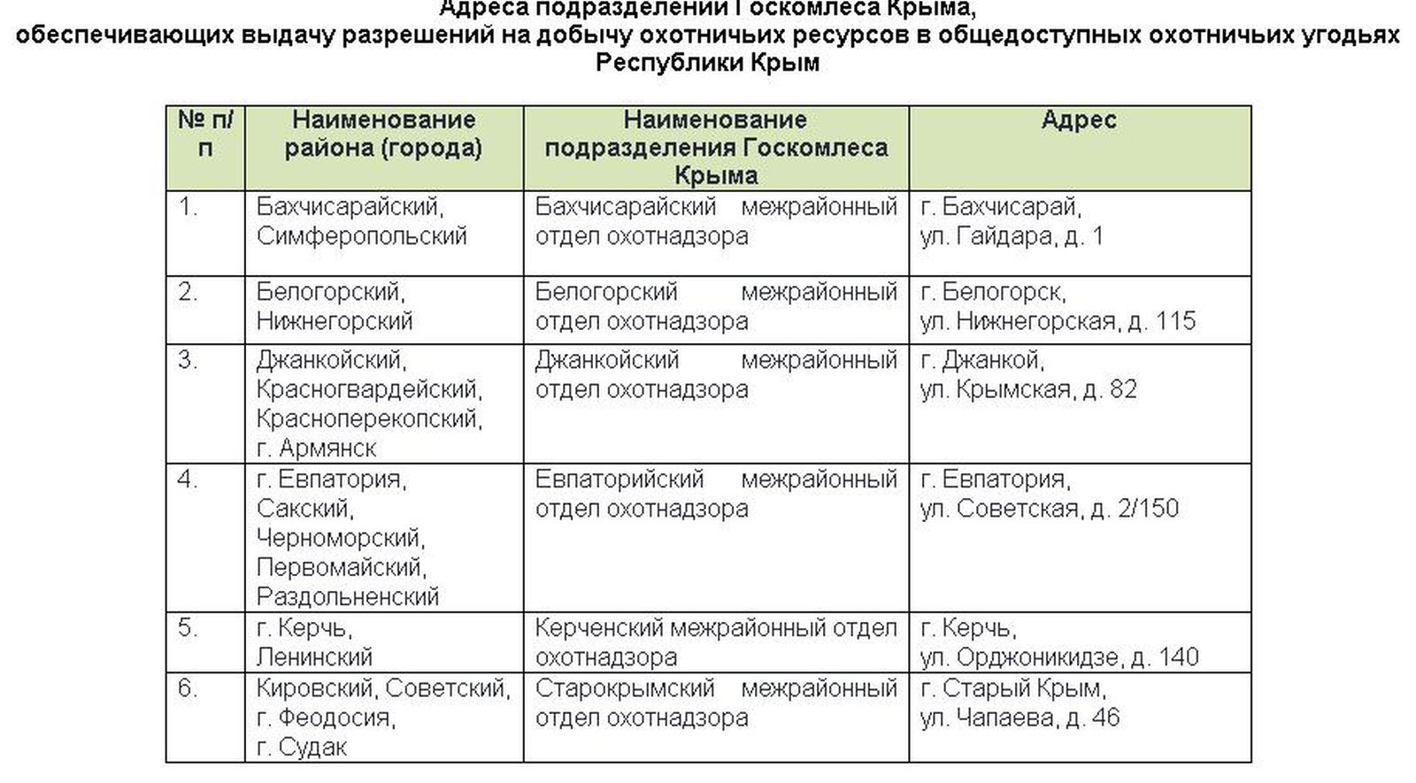 Адрес Бахчисарайского межрайонного отдела охотнадзора