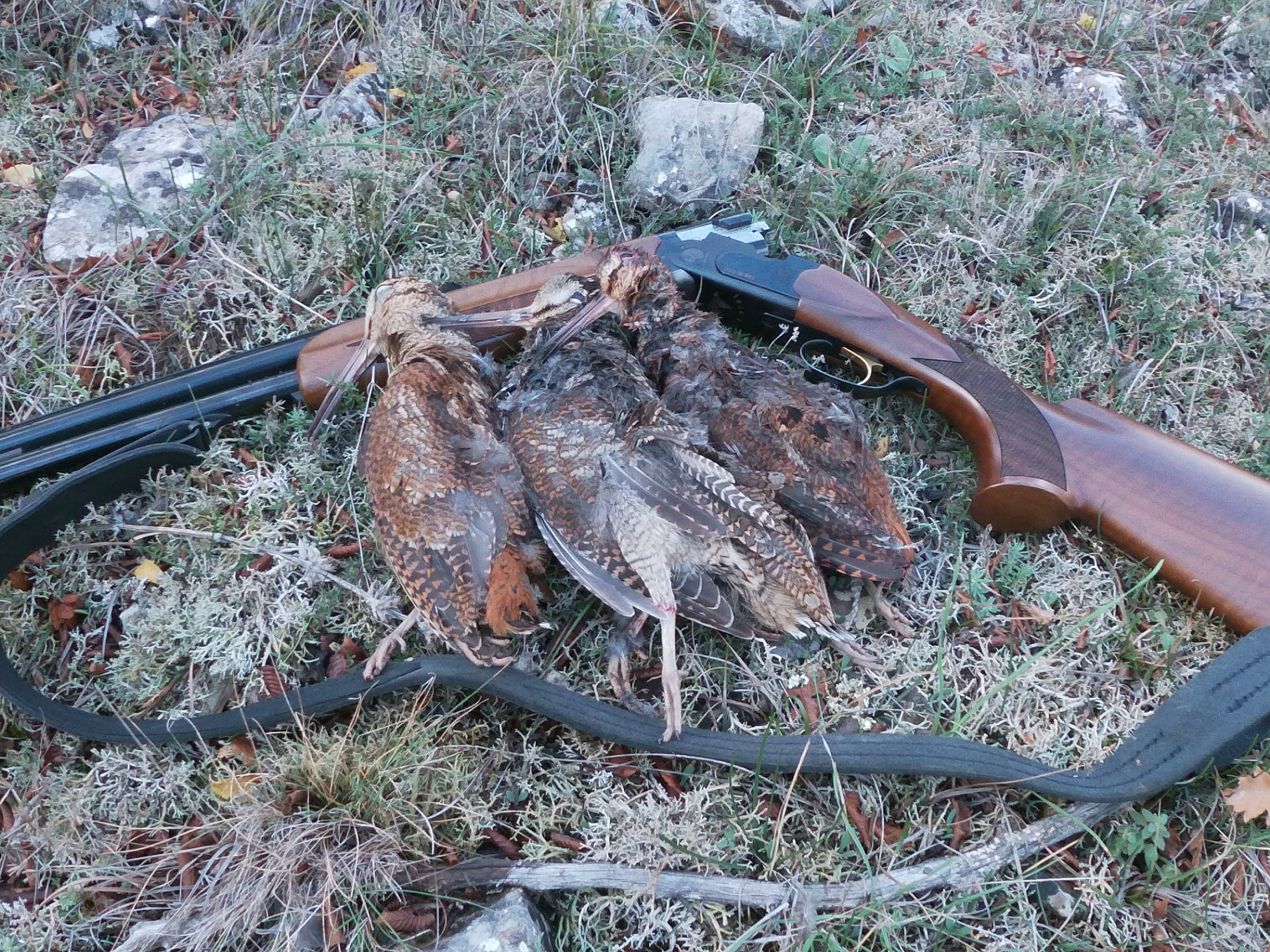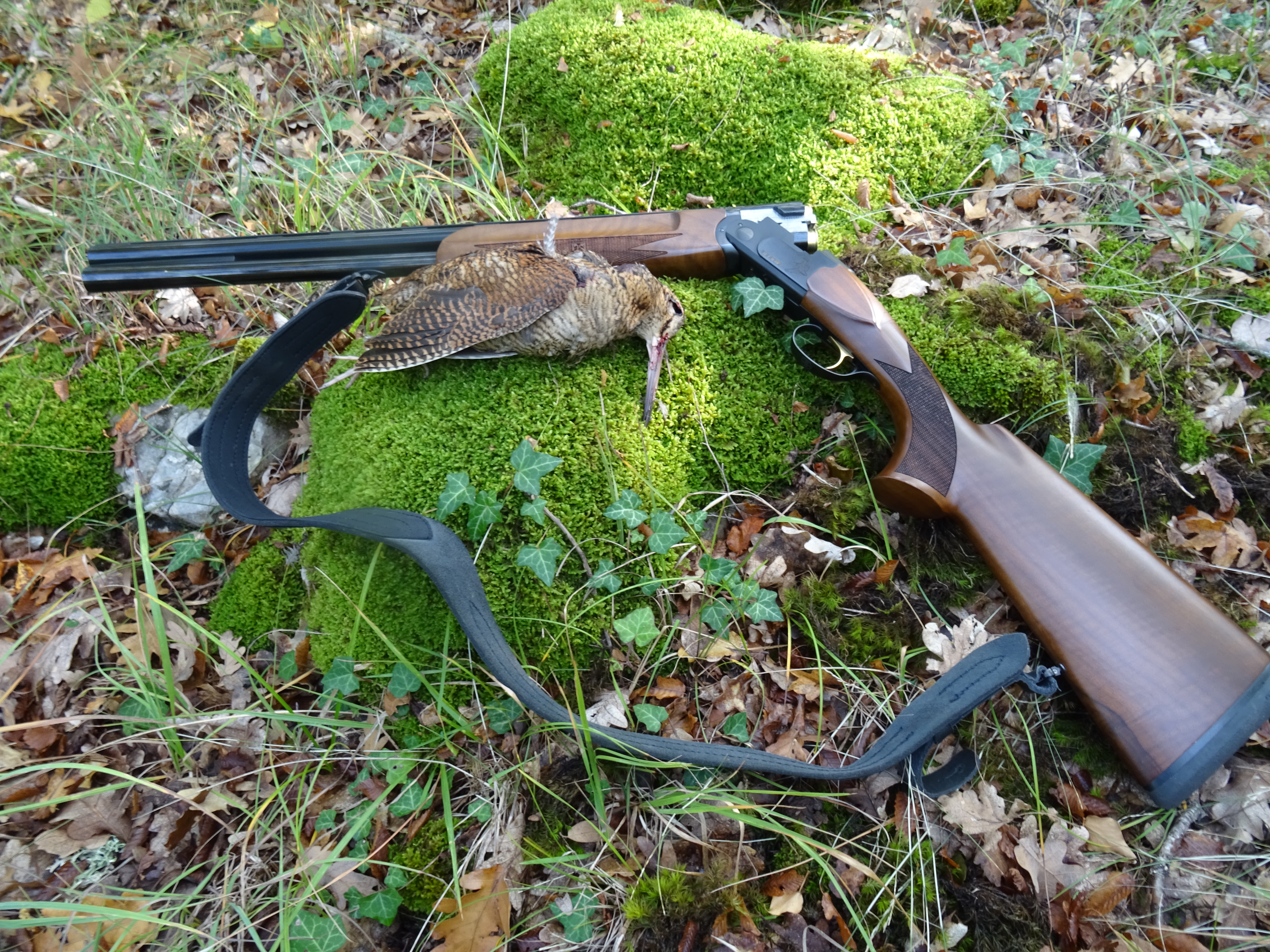 Вот стоит Атос ко мне мордой, значит вальдшнеп между нами, пытаюсь увидеть его , только нахожу взглядом и он не выдерживает взлетает, стреляю и вот он наш первый в сезоне добыт!Молодцы турки, хорошее ружье сделали, хоть и с одним спуском и ерунда что отвалилась мушка пока я лез через нашу природу, да и я не такой уж старый и возможно вовсе не козел. Без мушки, а таки попал! Атоска так вообще молодец!
