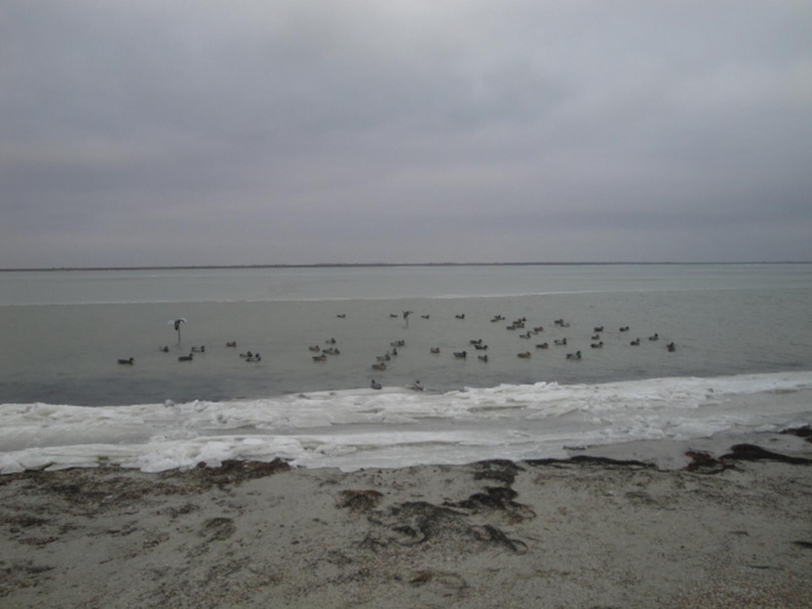 И так впереди была среда и ветер на Сиваше. В предыдущий выходной я уже делал попытку поохотиться на Сиваше. Смотрите предыдущий пост Сергея КП, и я там был но не дошел до косы так как не рассчитал свои силы. Набрал много подсадных уток и разных вещей включая газовую лампу, хотел на морозе попотчивать горячими колбасками приятелей. В итоге то ли больная нога подвела, то ли мешок с чучелами перевесил, но оказался я в воде. :23: Чучела за спиной вроде бы и тяжелые но оказавшись в воде стали всплывать у меня за спиной, да и костюм довольно легкий который я приобрел у dsf, (спасибо ему классная вещь) тоже держал ноги на плаву. В итоге я был грузилом, а все остальное поплавком. И морда лица оказалась в воде. :30: И если бы не находившиеся рядом форумчане Чак и Сергей КП справляли бы по мне панихиду. Сняли с меня мешок с утиными чучелами и перевернули на спину. На этом моя охота закончилась.