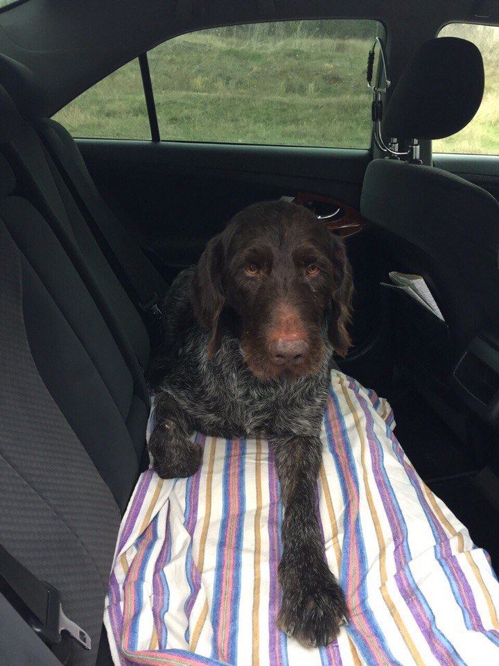 Вчера, 12.11.2016 . В районе г.Белогорск (с.Чернополье) в результате ДТП из разбитой машины сбежали три собаки. Двух курцхааров нашли, третью - дратхаара хозяева безрезультатно ищут. Молодой кобель. Фото собаки подлинное. Если кто что либо знает или видел собаку просьба сообщить по тел. +79788449697 Олег