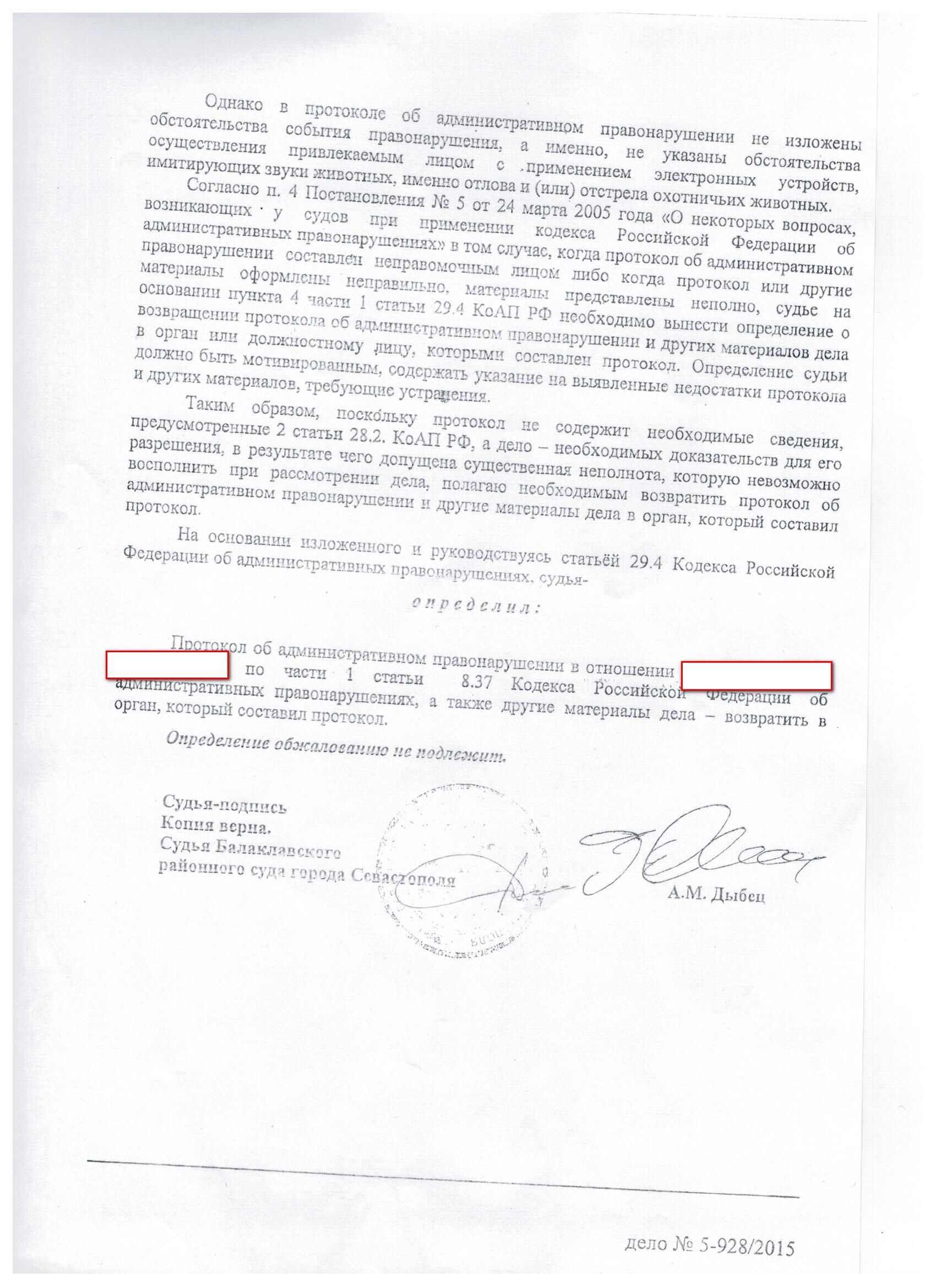 Первый абзац второй страницы. Судья указал на то, что в протоколе не указано что манок применялся именно при отлове и отстреле.