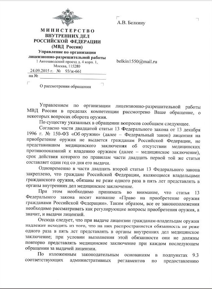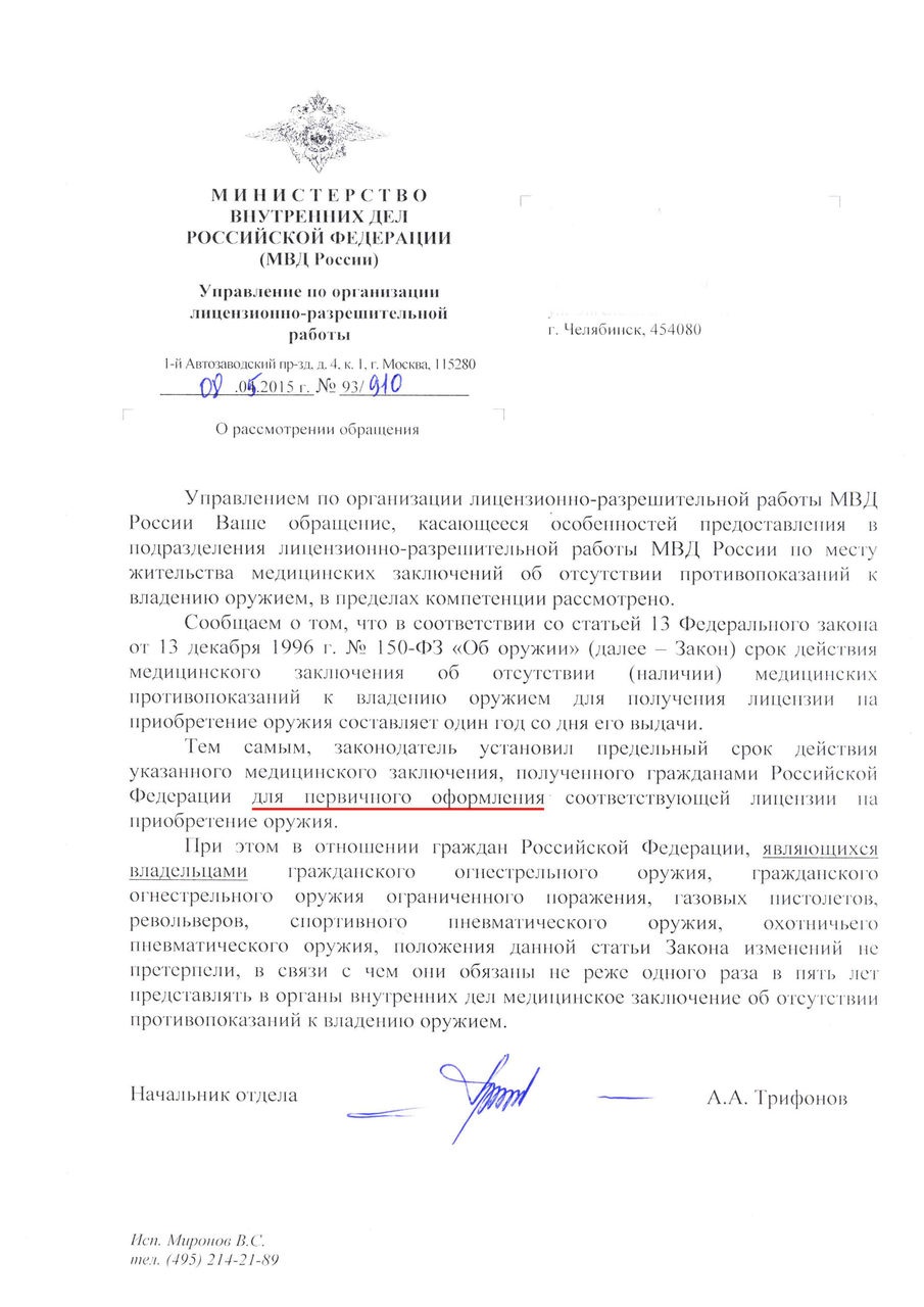 Для покупки нового ствола, если справка есть, и пять лет не прошло, новую предоставлять не надо !!!