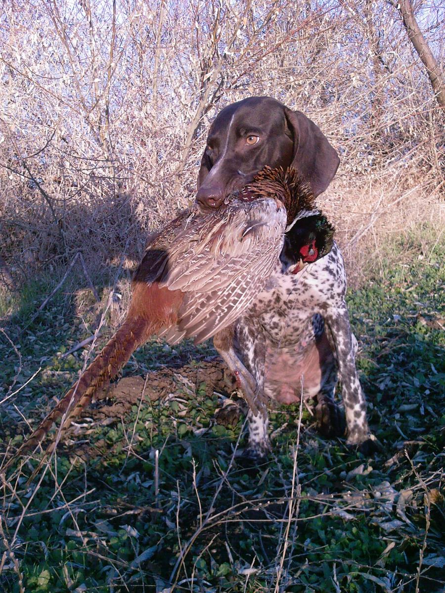 Отец (из немецких питомников) - Арнольд, вл. Гринченко А.Б., экстерьер - отлично, 3 место на 4 Всеукраинской выставке охотничьих собак 2013 г. Дипломы: 2 - Д 3, 1 - Д 2, в т.ч. по куропатке.