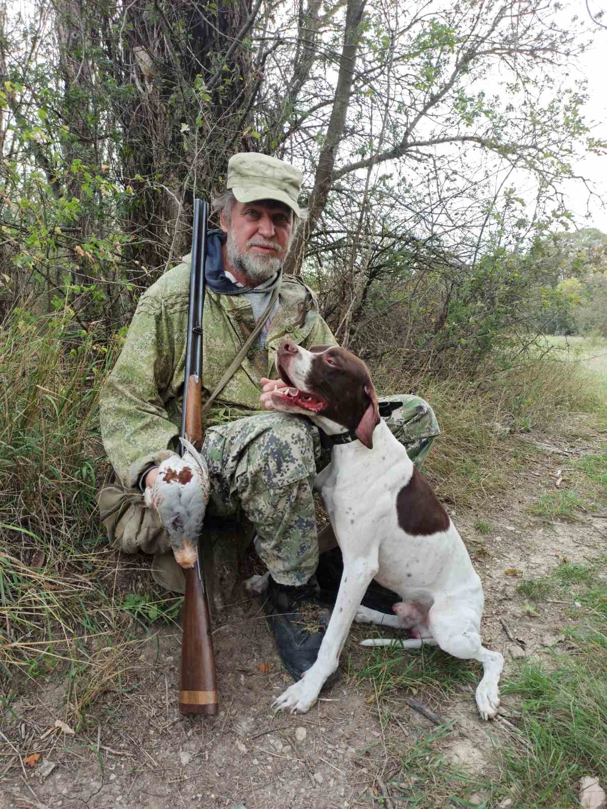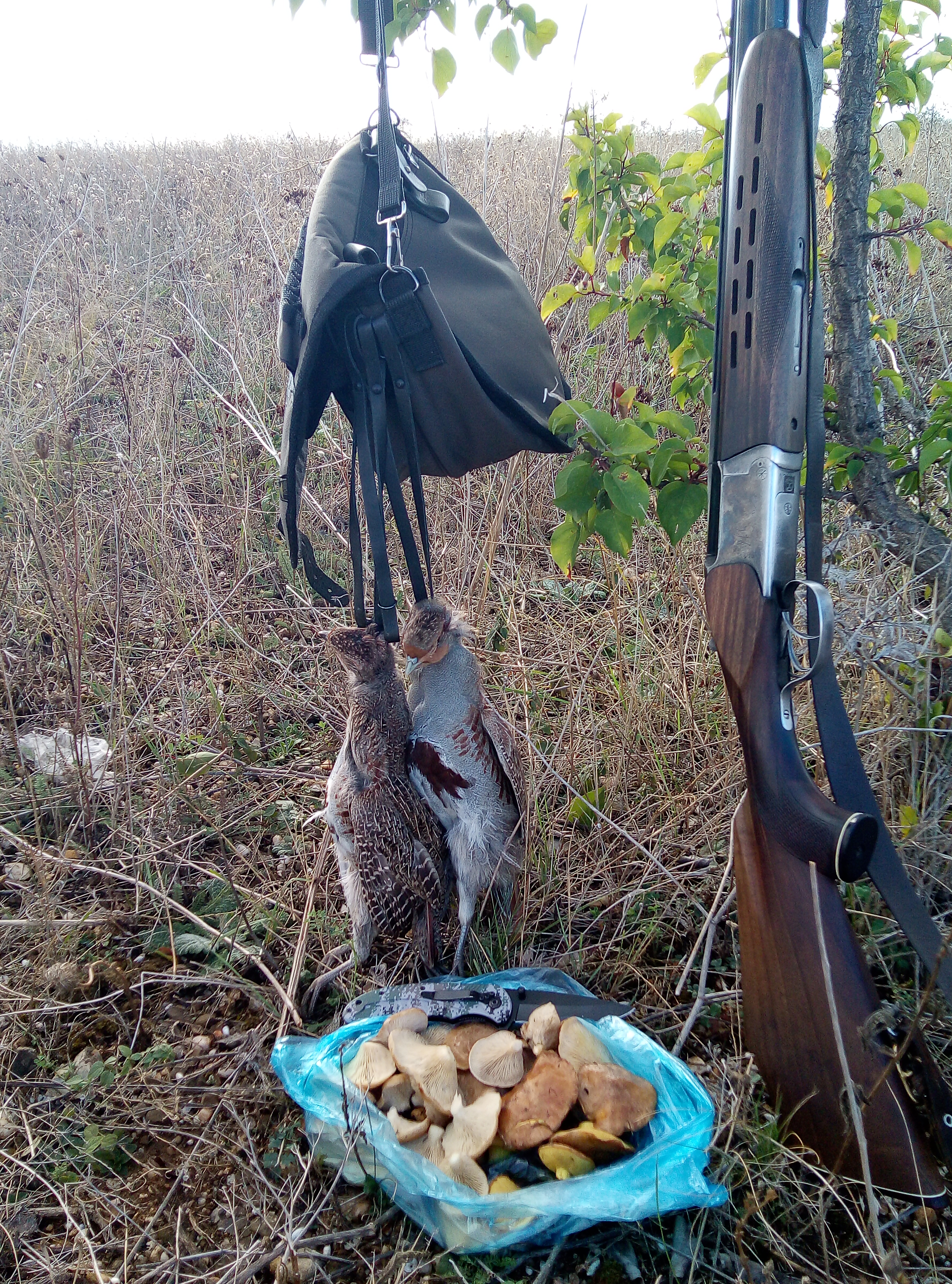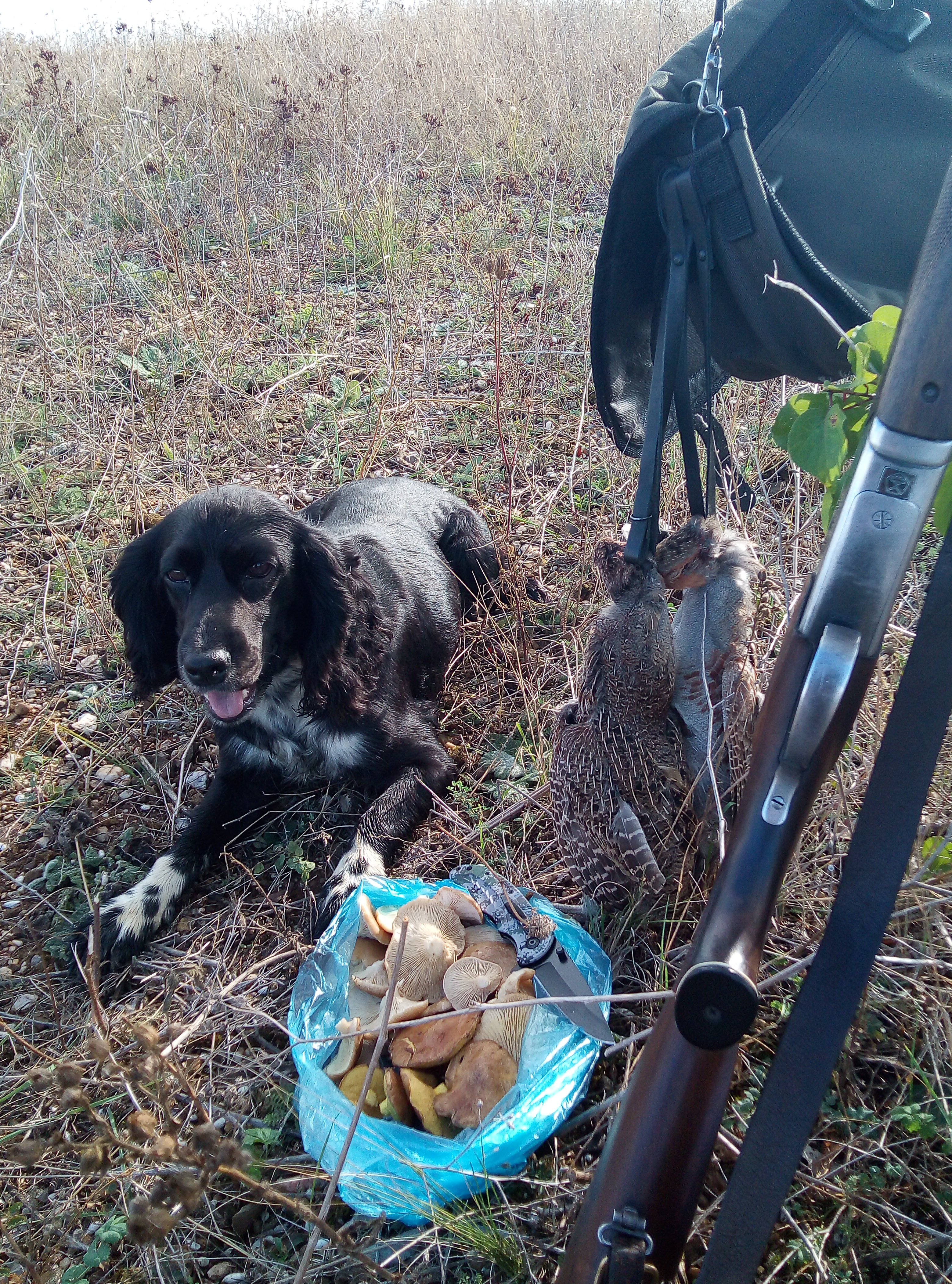 ходили вчетвером плюс две собачки. Собакам тяжело, ещё жарко. Ходили с расвета часа три и вечером с 17.00,а в обед в теньке под деревьями, под пять капель чаю
