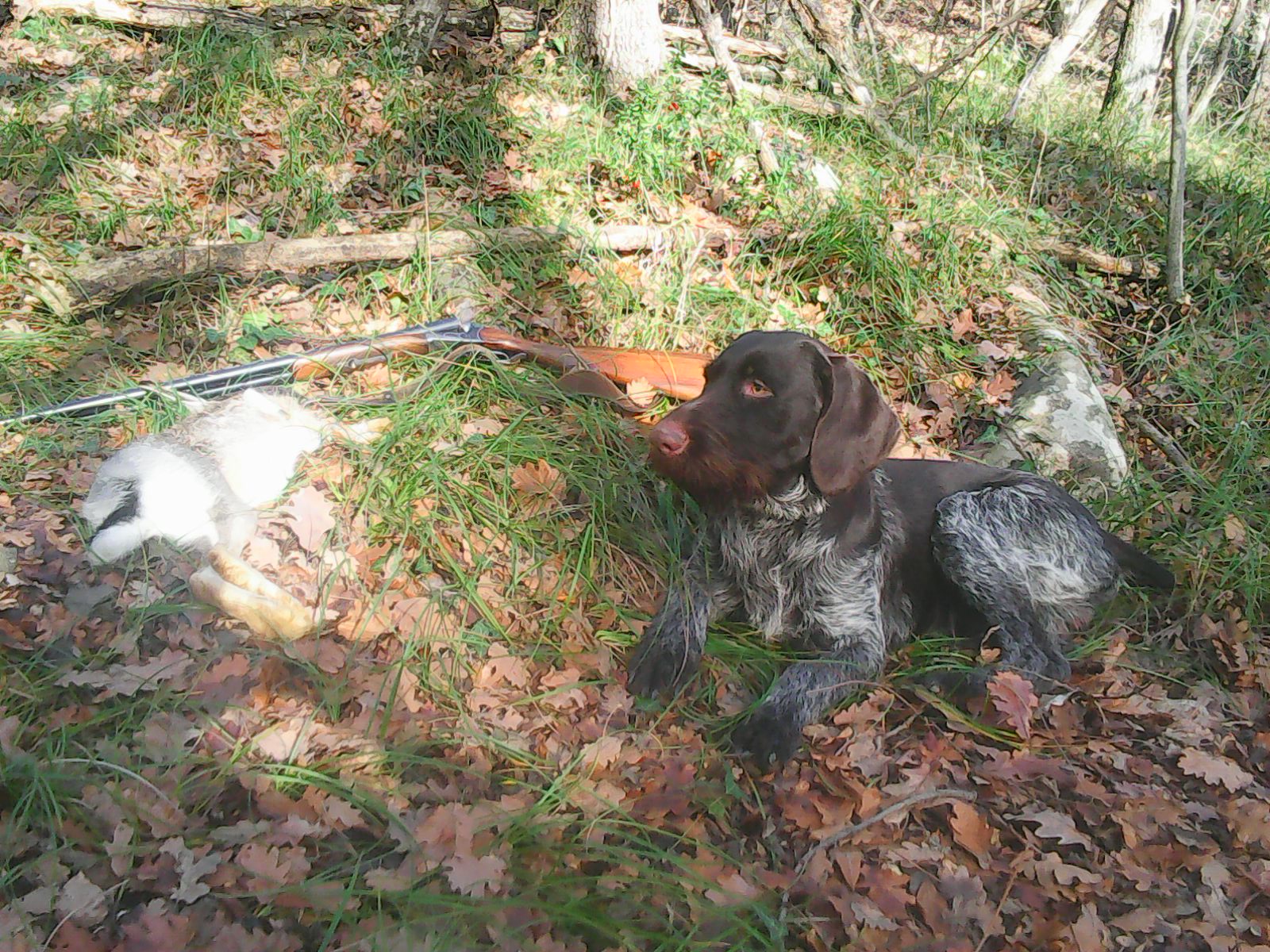 В воскресенье переборов себя вышли компанией из четырех человек,плюс две собачки и нашли в себе силу воли погулять до обеда (ночью до восьми утра шел довольно таки хороший дождь) Результат охоты два подъема зайца и не одного не взяли.Первый поднялся на зеленки метров за сто и естественно не стреляли,но я был рад я видел зайца,а это уже результат
