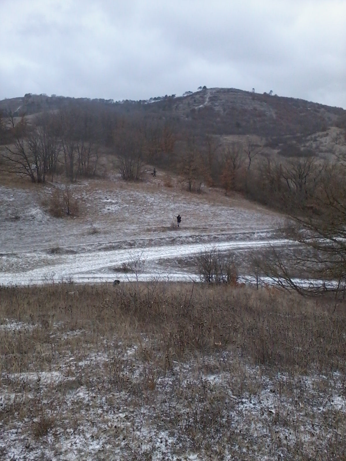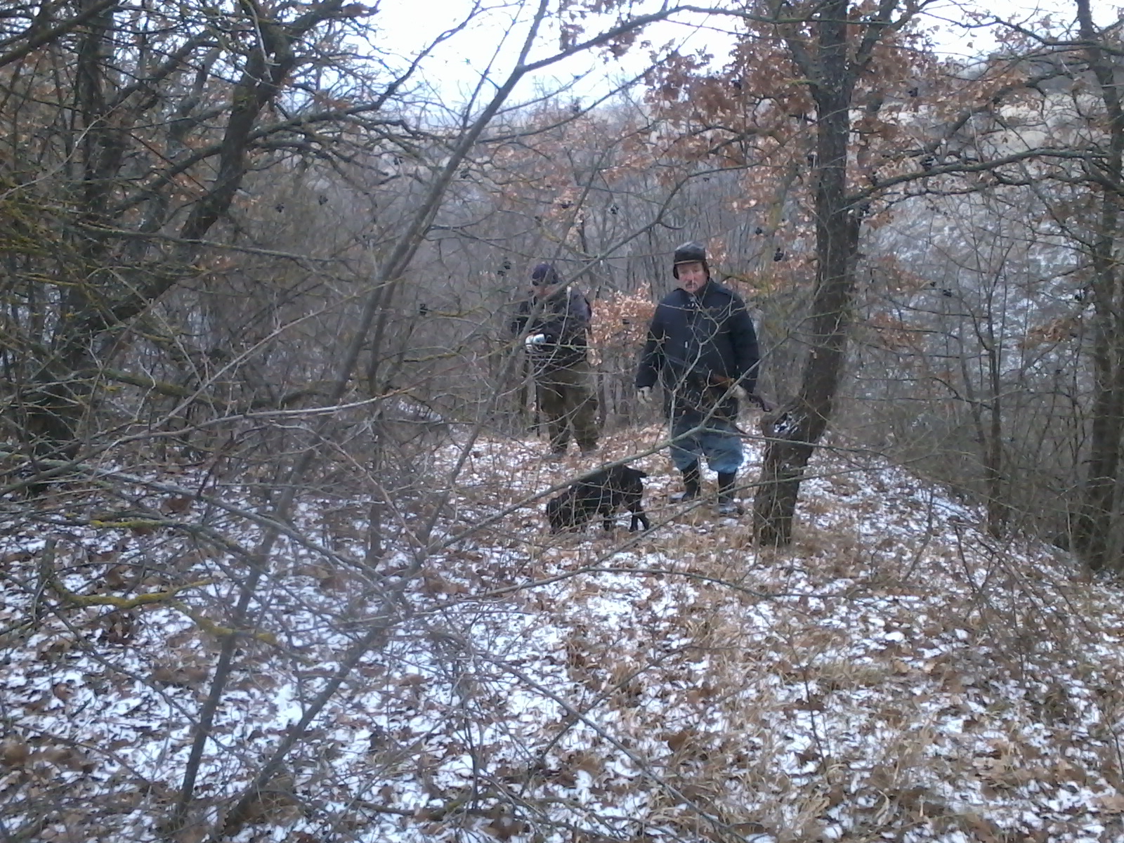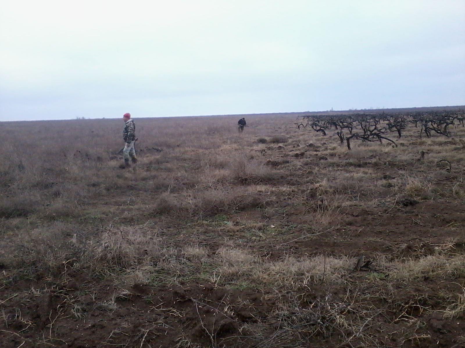 ветер дул будь здоров.Ходили компанией из семи человек,плюс две собачки.Итог семь подняли ,четыре взяли.Заяц лежал на косогорах,под леском.Последнего взяли в паханом через ряд винограднике,зашли на "разведку"