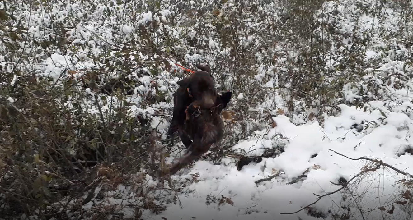 - Собака: Дратхаар (Альма), РЕЛ (Линда)