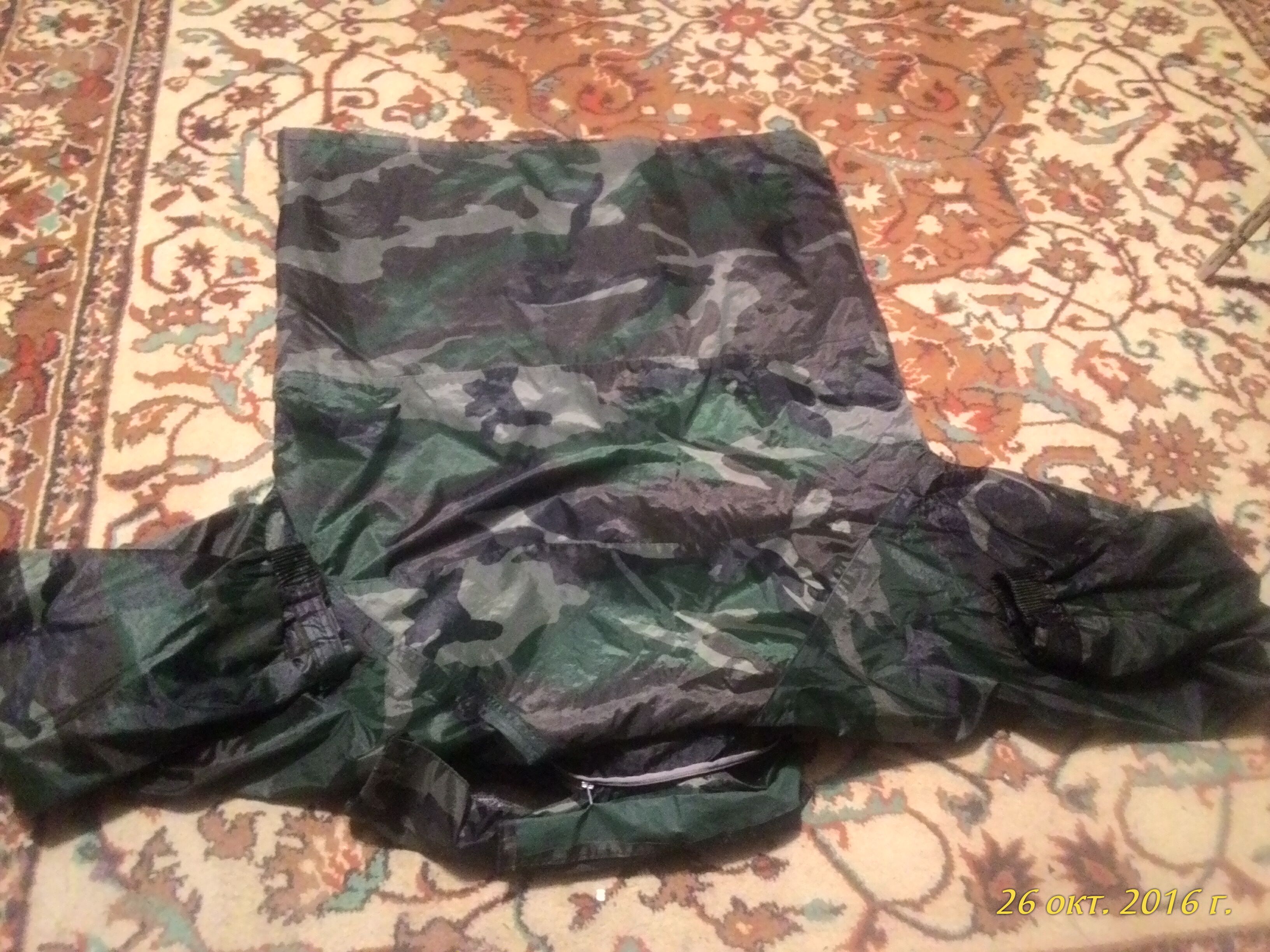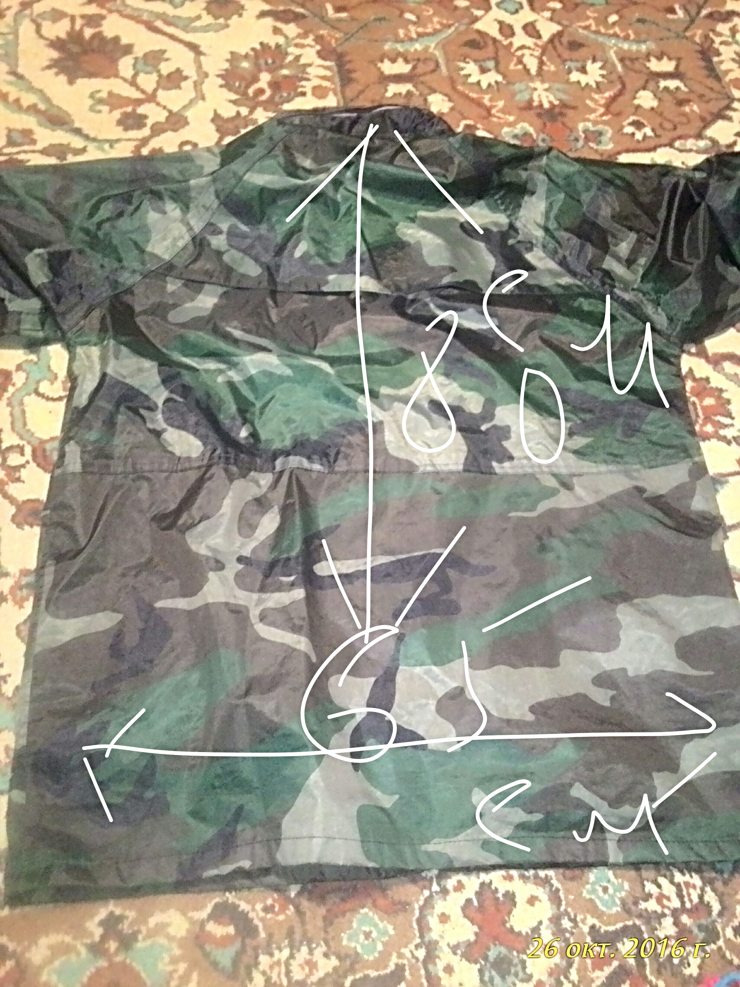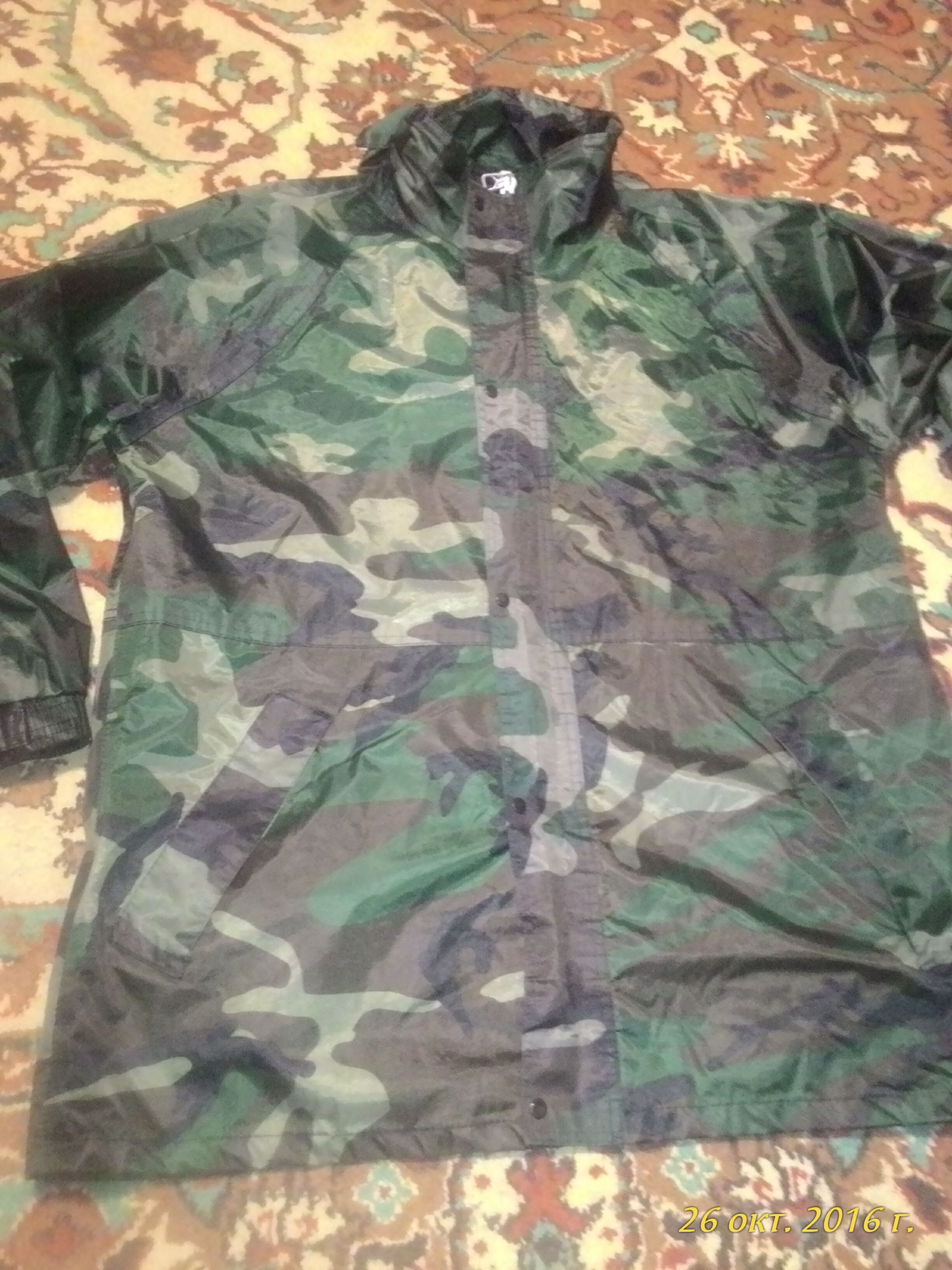 Ветро,водо не проницаема,капюшон есть,(прячется в воротник)два боковых кармана с водо не проницаемыми клапанами,рост4~5,размер до 62,по рукаву 76см,остальные мерки по фото.манжеты рукавов регулируются липучками,застежка ветровки состоит из молнии и клапана по всей длинне на кнопках,цена 1200руб