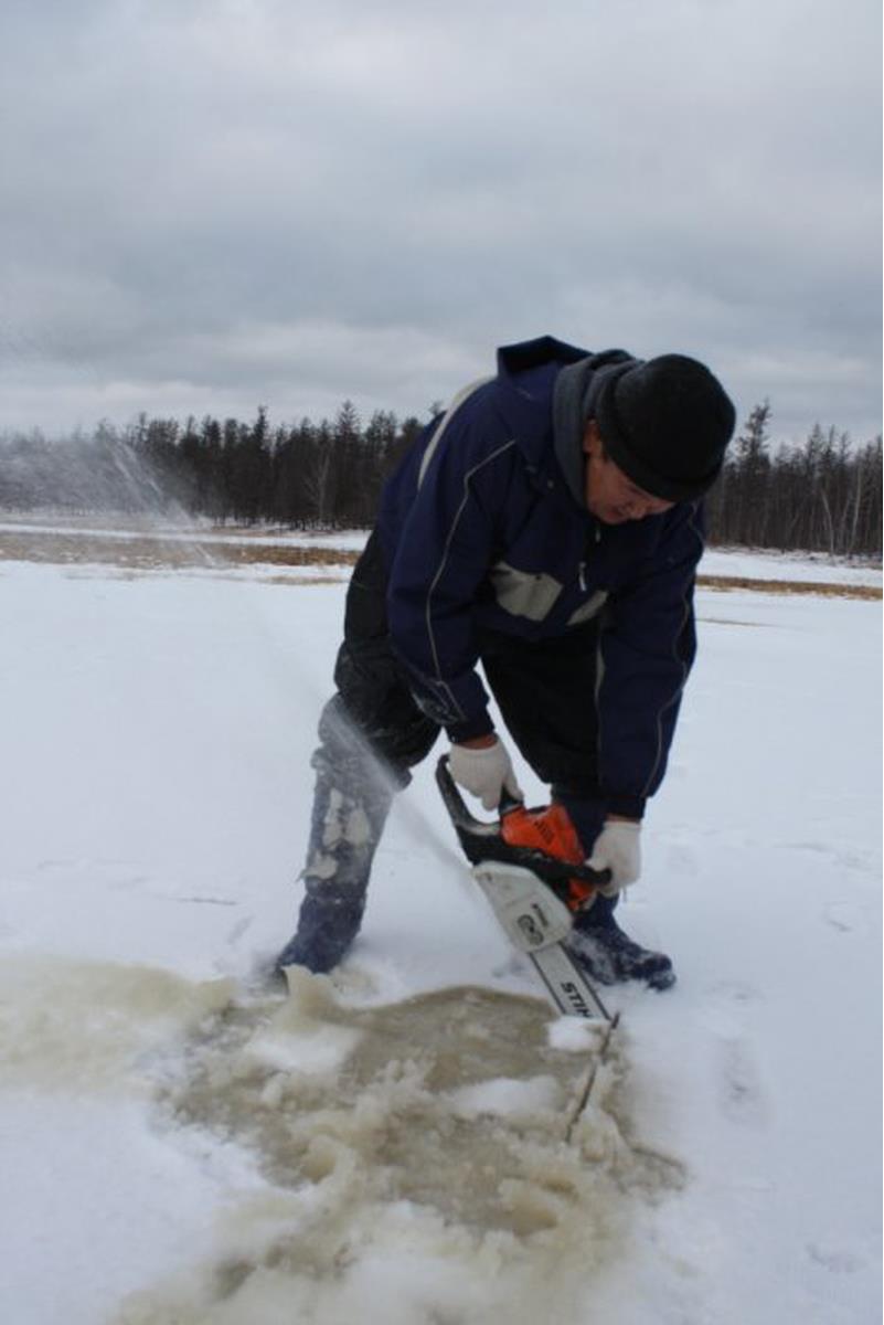 http://ohotayakutia.ru/) не остались в стороне - наша съемочная группа едет в Сатагай Амгинского района, куда нас пригласили принять участие в большой зимней рыбалке неводом.Особым и любимым видом национальной рыбалки народа саха считается мунгха (подледное неводование). Кстати, такой метод коллективной рыбалки в мире считается уникальным. Зрелище азартное и неповторимое, по большому счету это разновидность облавной охоты, только на карася и подо льдом. Поэтому и решил я разместить здесь.Как только озеро покроется достаточно крепким льдом, способным выдержать большое количество людей, наступает пора мунгха. Жители деревни заранее собираются у главного распорядителя и совещаются, какое озеро в этом году будут неводить. Надо сказать, что существует обычай – после неводования озеро не трогают в течении 3-4 лет, с тем, чтобы восстановилась рыба. Также запрещается применять невод с мелкой ячеей. Рано утром участники мунгха идут к выбранному озеру. На большой невод на заранее выбранное озеро выходят практически все мужчины деревни, которые делятся на команды – одни прорубают лунки, другие проводят и тянут невод, третьи гонят рыбу, последние вычерпывают рыбу сачками.