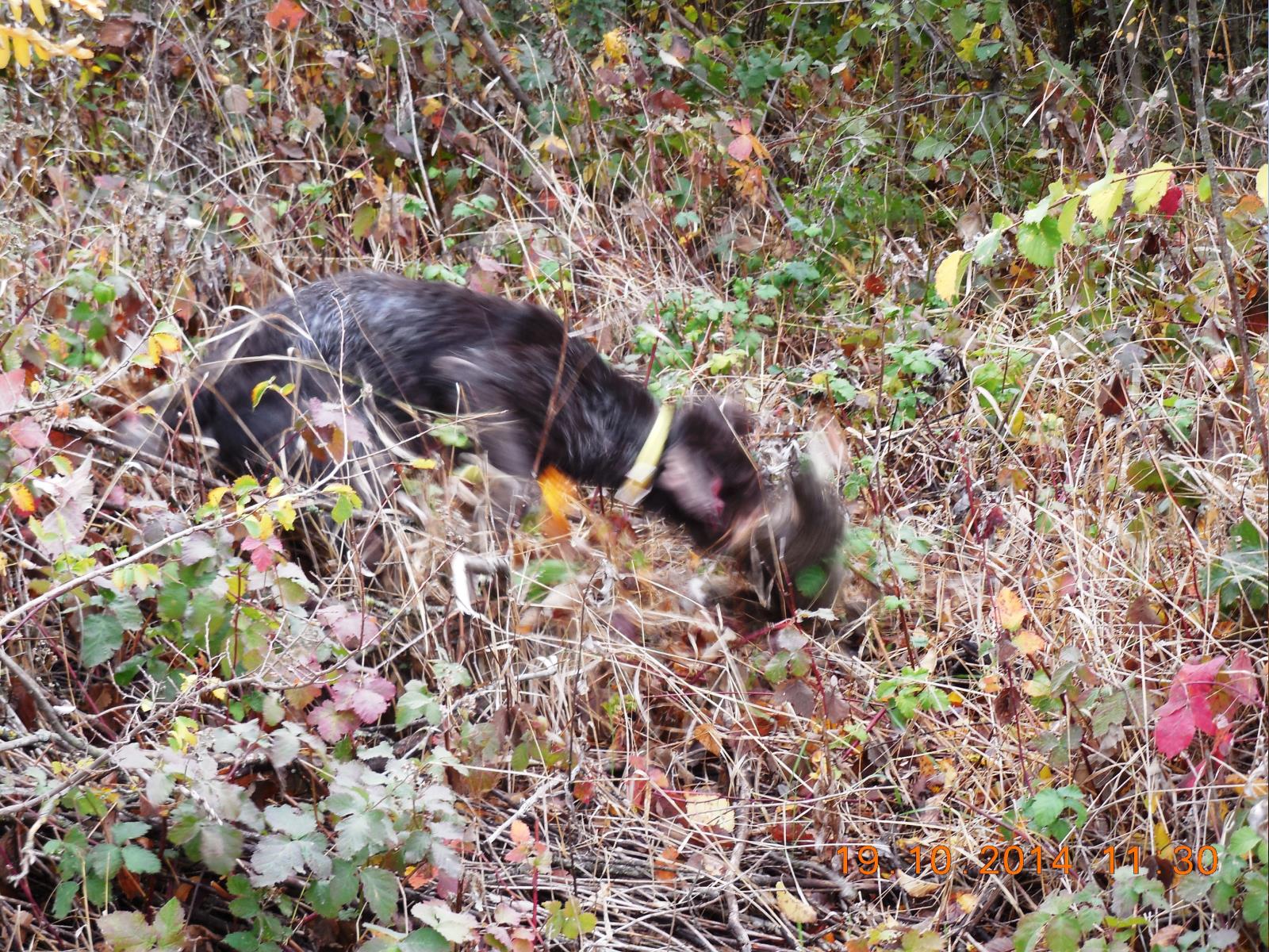 Да, с правой стороны стволов, лежит куропатка,нашли подранка.