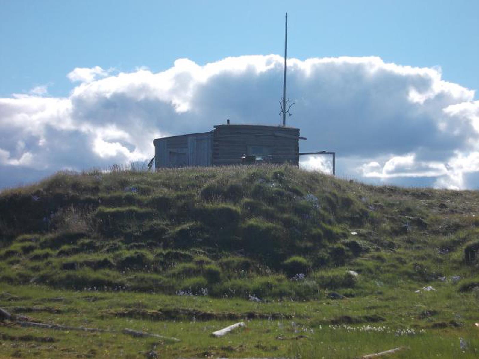 - Натыкаюсь на руины холомо – дерновой избушки промысловиков.В таких избушках зимовали наши предки.