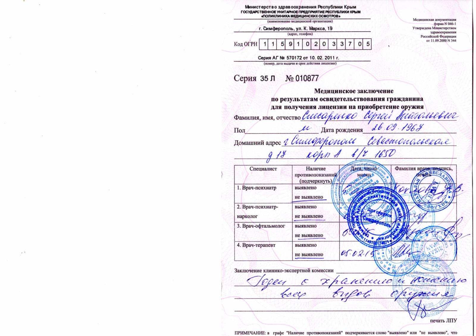 принести справки от участкового за прошлые года о проверке хранения оружия!