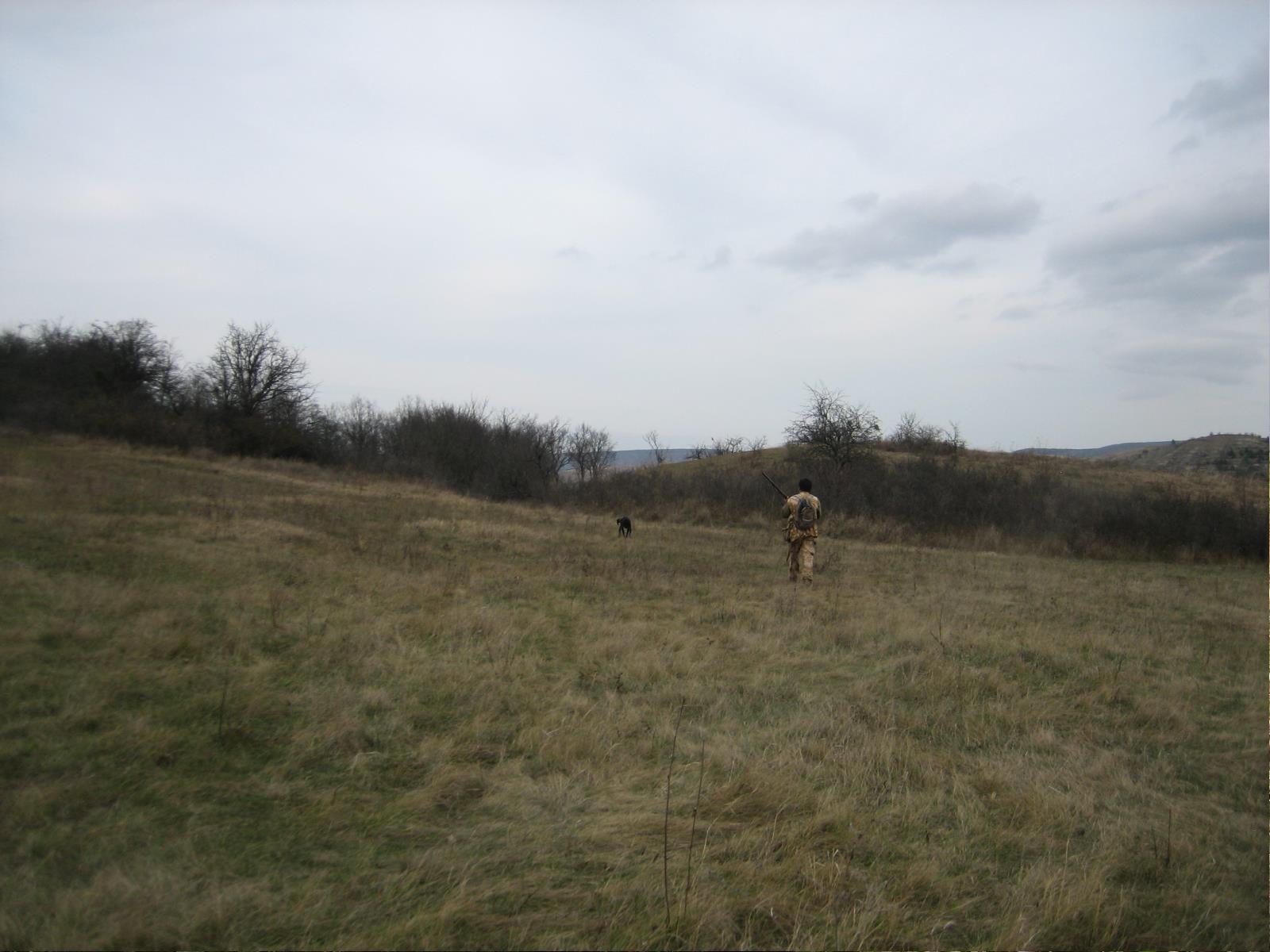 Позавчера прогуливался с дочкой (которой нужно было как-то прогулять школу -по известным причинам) в тех самых местах, что недавно посетил Владимир Грищенко. Птицы откровенно мало : 6 подъемов.Но стойку птица держит в общем-то,-хотя не без перебежек перед этим. По 5 стрелял ; 4 добыл. Уже на "выходе" к автомобилю, на границе равнины, Блэк стал по выводку куропаток(фото 2); выстрелом из верхнего ствола(без "дисперсанта") выбил одну, но и та подранком бегала по терновникам метров 30.
