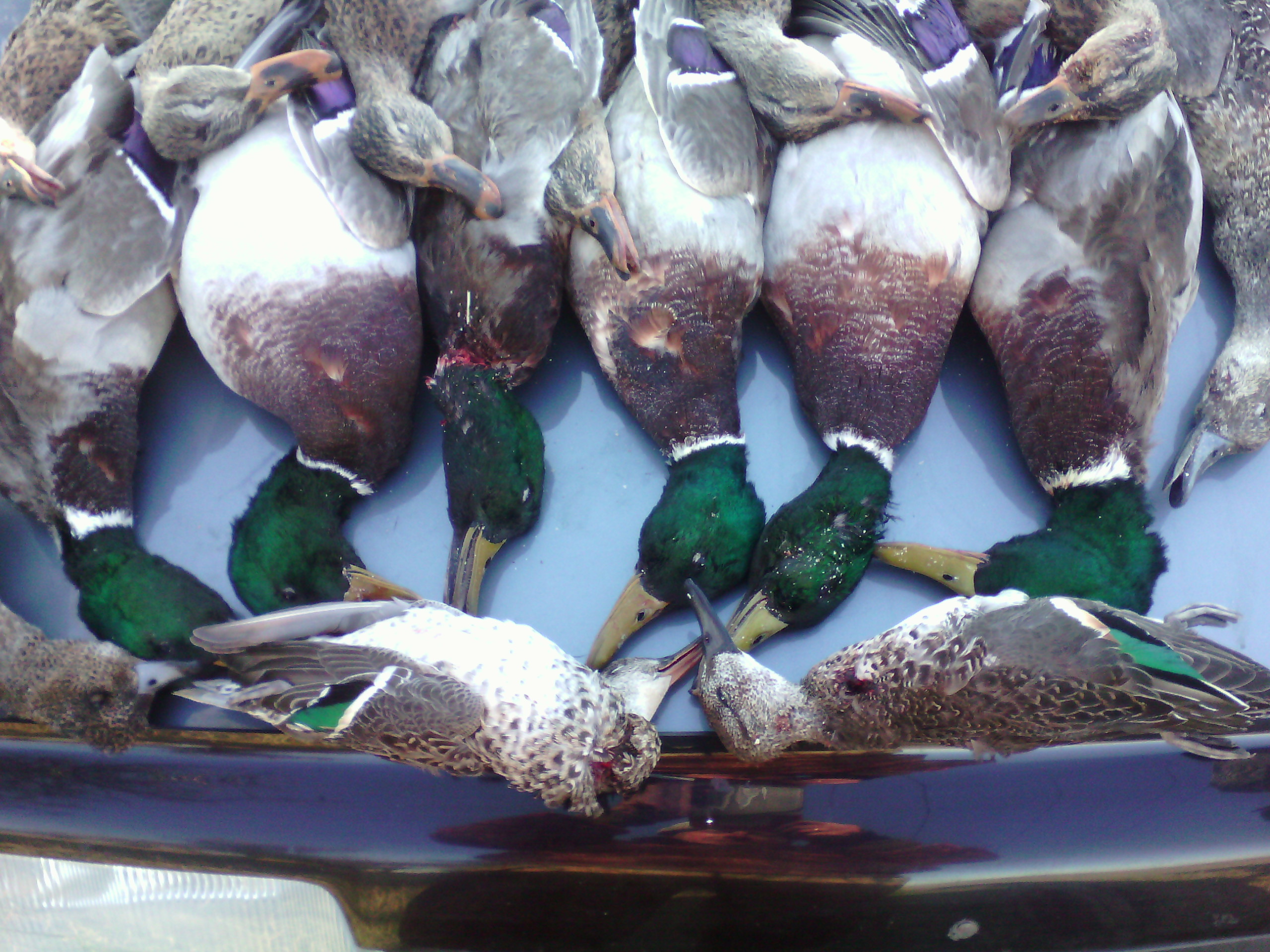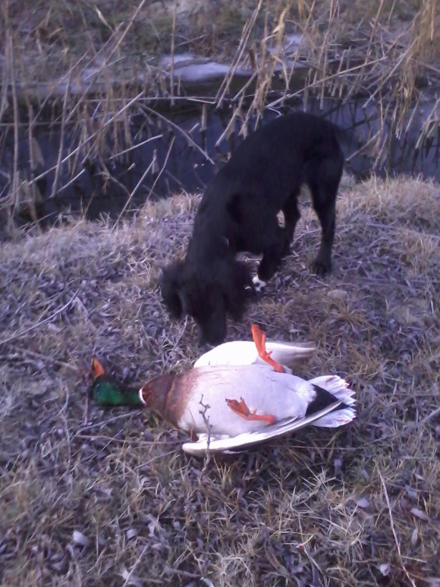 За неделю перед заморозками на речке взял пару чирков.На 31-е на речке поднял две кряквы и кряжня в метров тридцати,выбрал кряжня,первым смазал,а вторым накрыл.Правда после второго выстрела еще протянул метров 60,стрелял "7" в контейнере.