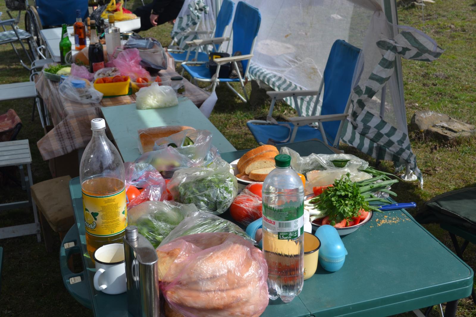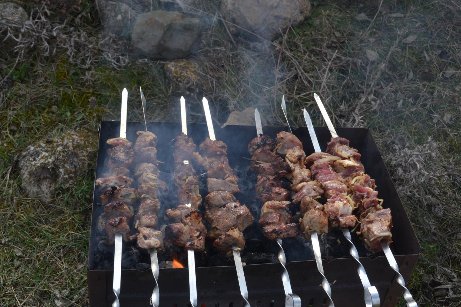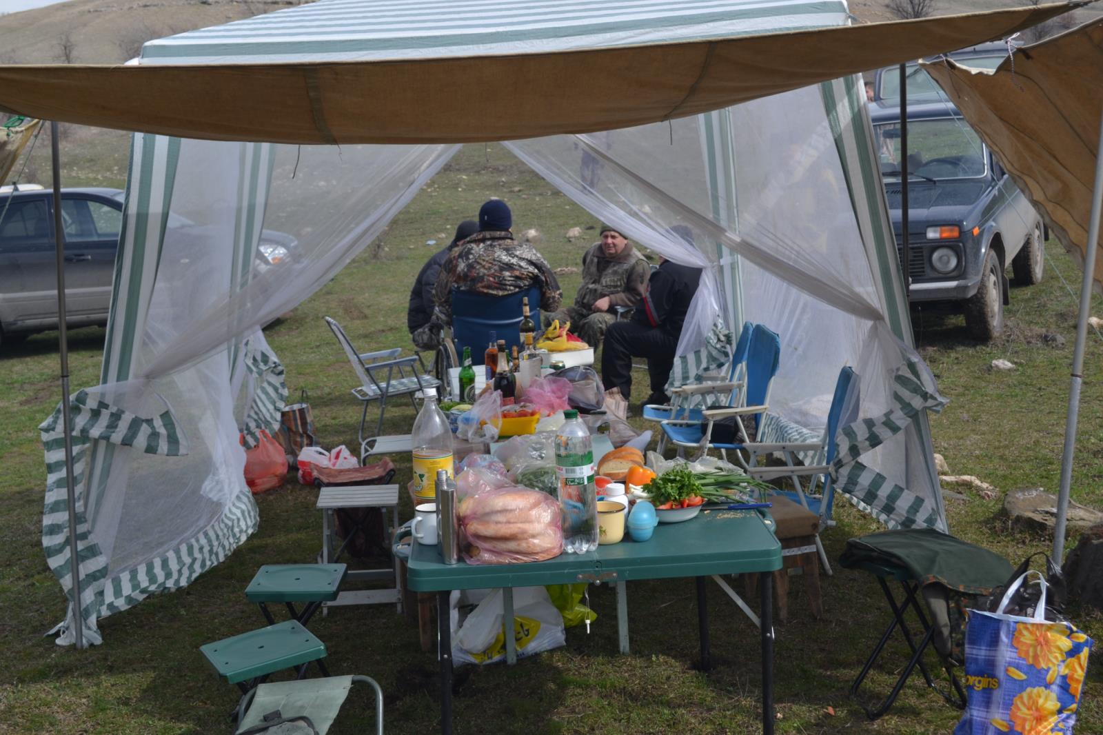 Разбили бивак, и сразу за шашлыки.